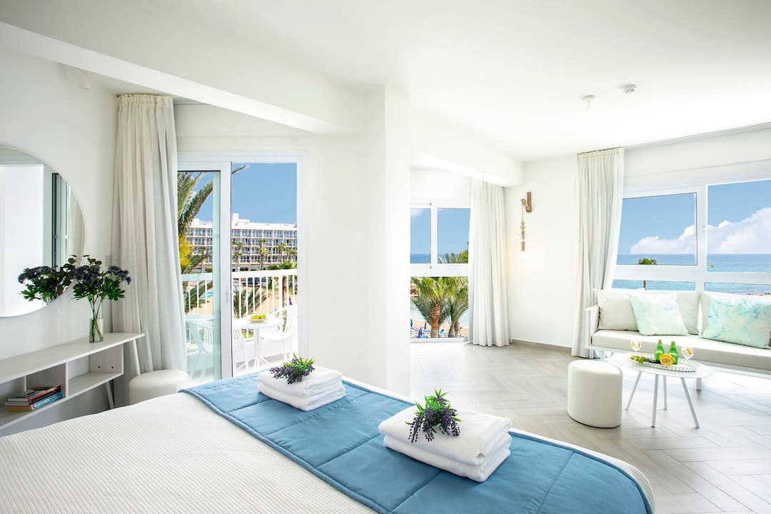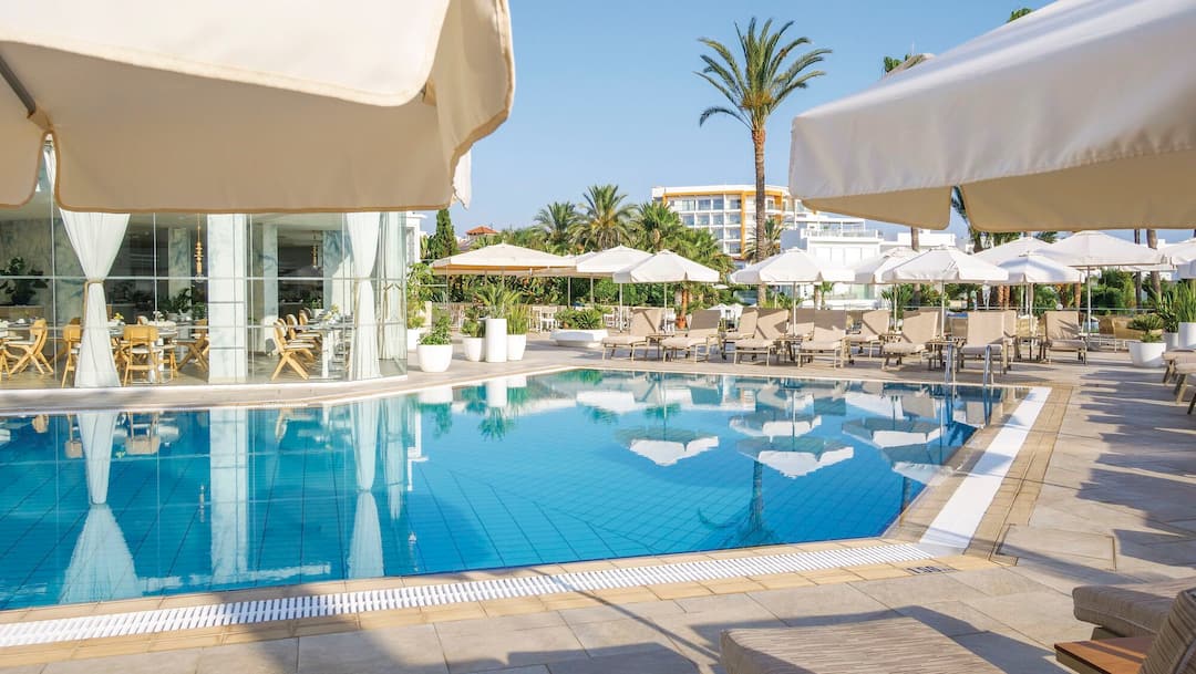 The all inclusive, adults-only (17+) Infinity Blu Hotel is a slice of paradise on Pernera Bay. A member of the Louis Hotels group, the hotel is new for April 2017 and features sleek, modern interiors. More than half of the hotel’s rooms have sublime sea views, with a number of bars serving up refreshing tipples to accompany those long, sun-soaked days by the pool. Rooms come with balconies and there’s free Wi-Fi access in the lobby. An on-site buffet restaurant serves a wide range of cuisine, with its smart-casual dress code creating a sophisticated atmosphere for couples looking to spend quality time together.