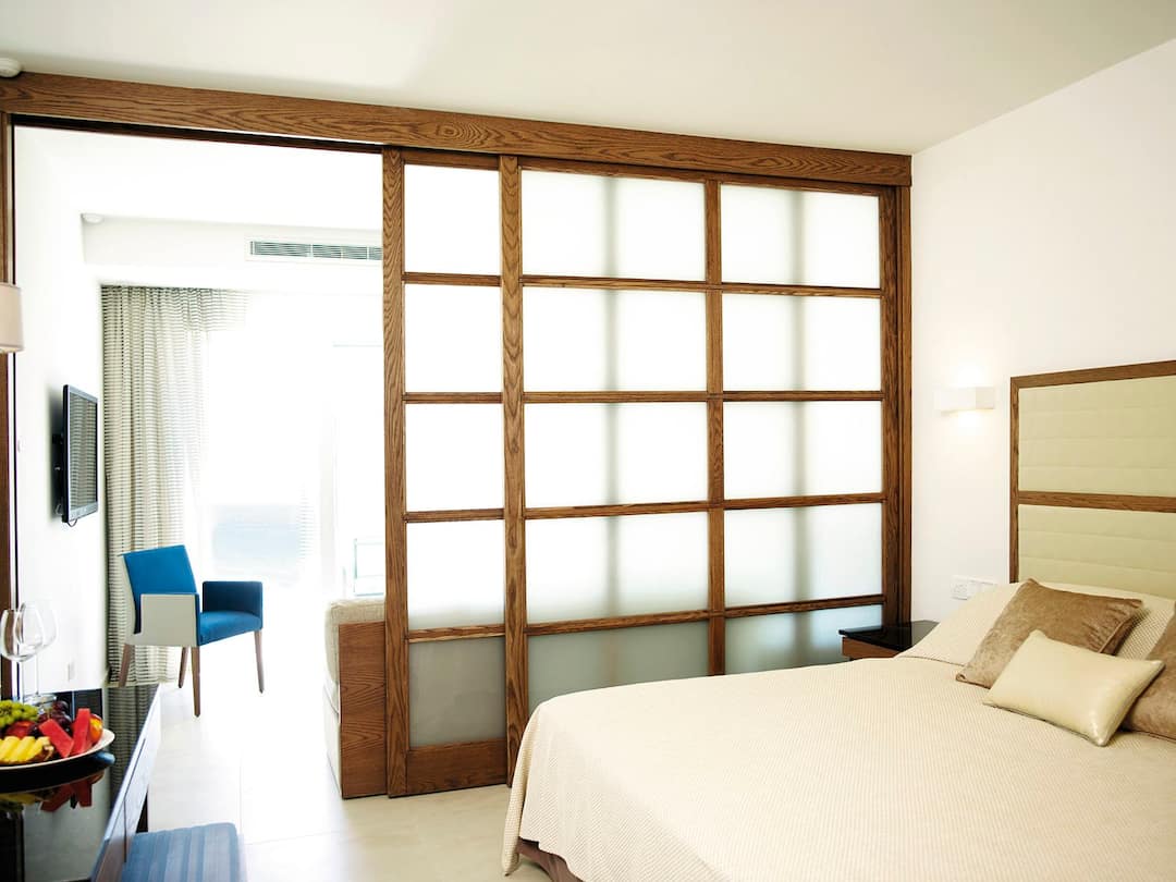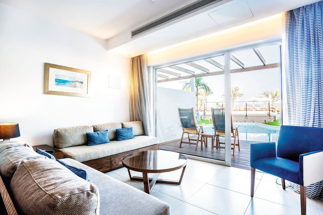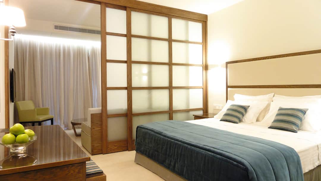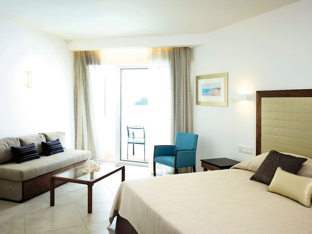 Sunrise Pearl Hotel and Spa is a great choice for holidays to Cyprus and is one of the most luxurious hotels in the region. This five-star get away is right on the beach and only a short walk into central Protaras. The hotel has been finished with modern opulence which sees the pools framed with white parasols and decadent day beds. Inside the hotel, there’s even a glass lift that gives you fantastic sea views all the way up. There are three restaurants on site, and a variety of options ranging from American to Greek and Italian fare nearby.