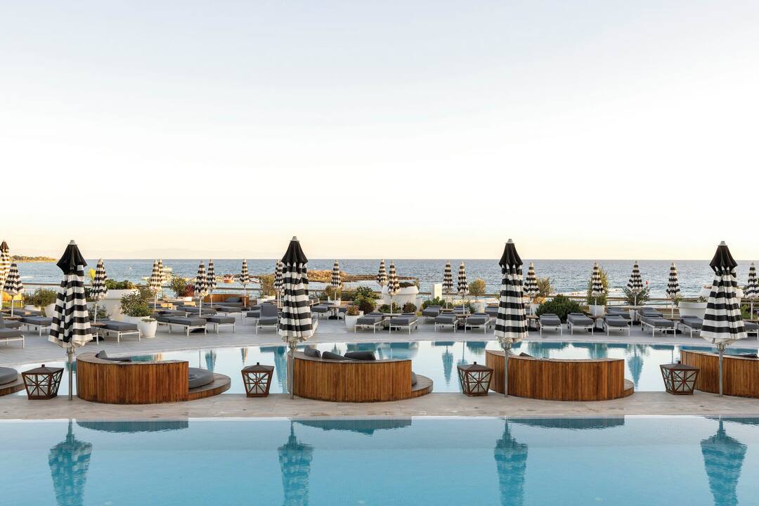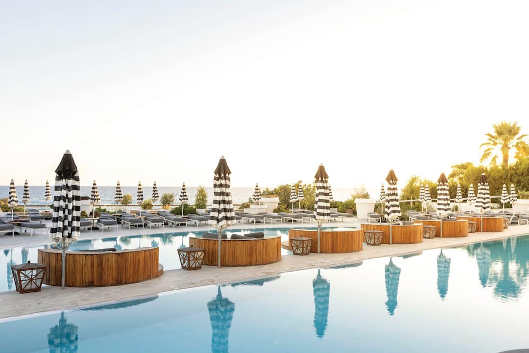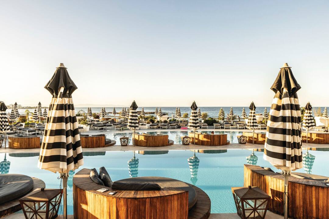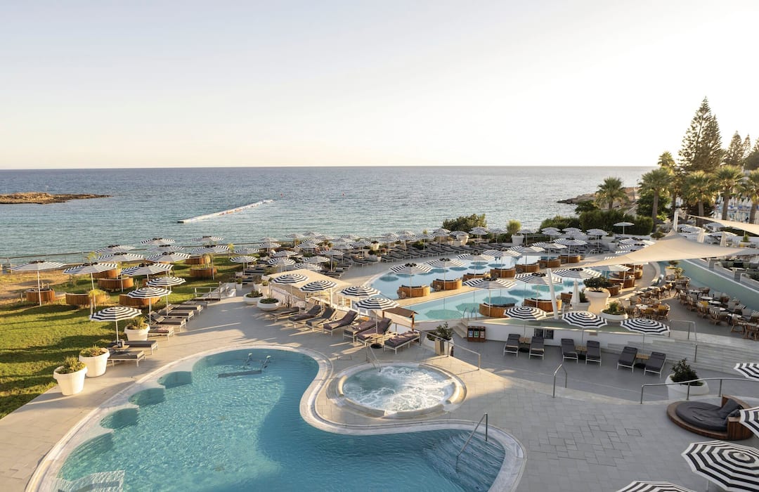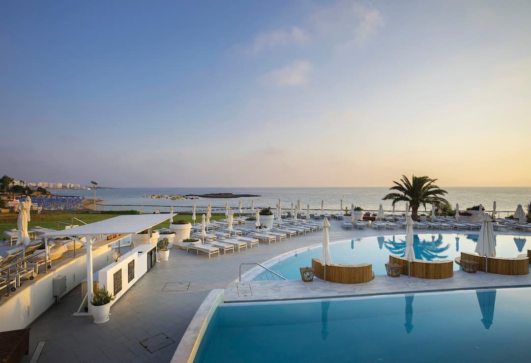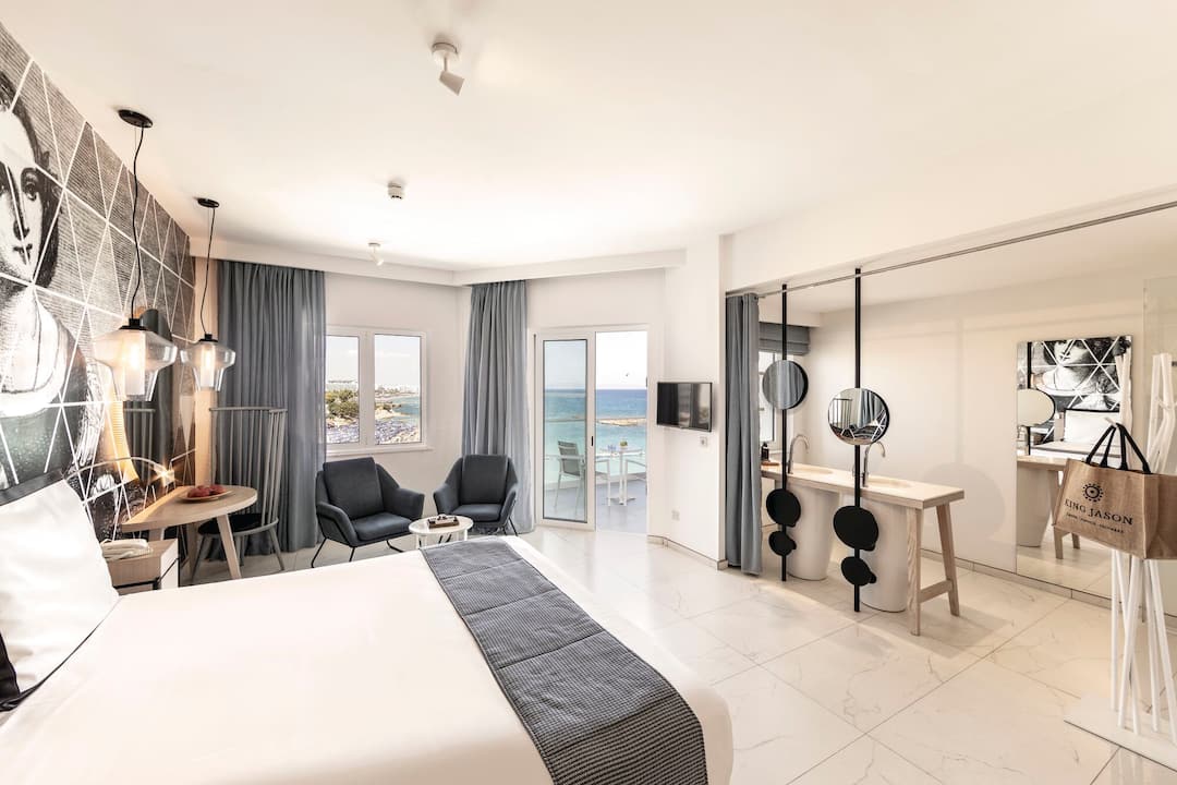 A taste of luxury is first enjoyed upon arrival at The King Jason Protaras with a welcoming glass of bubbly. The hotel offers beautifully appointed rooms in cool, contemporary tones, while the central pool area is at the heart of the complex, with an inviting terrace and bar offering panoramic sea views. Snacks are available from an a la carte menu and main meals are served buffet-style in the Piatakia Restaurant. An onsite gym and spa are also available as added luxuries.