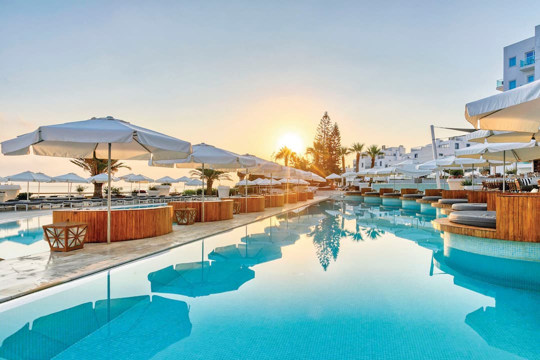 The sun-splashed island of Cyprus is a Mediterranean magnet for sun and fun-seekers alike. This holiday icon has tourists flocking to Protaras on the east side of the island for its glorious beaches lined with fine flaxen sands and sparkling azure waters. This friendly, tranquil resort covers 5 kilometres of the golden Famagusta Coastline. Set in Fig Tree Bay, the four-star King Jason Protaras is the ideal spot to enjoy a beach holiday with lively dining and entertainment.