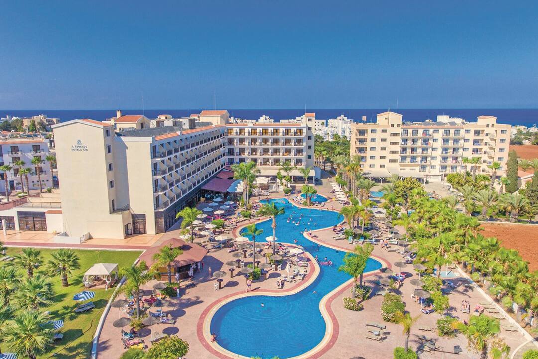 Located in a quiet spot, but still in easy reach of the local amenities and Protaras’ lively nightlife, the Tsokkos Gardens Hotel contains fun for all the family. The pool area is the main feature that draws people to the hotel, but it also offers guests so much more, including a classical-looking restaurant and an open-air bar. Activities range from water polo to floodlit tennis, and in the evening, the whole family can get together and enjoy various forms of live entertainment, such as bands and singers.