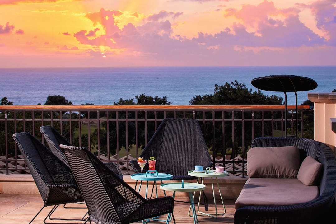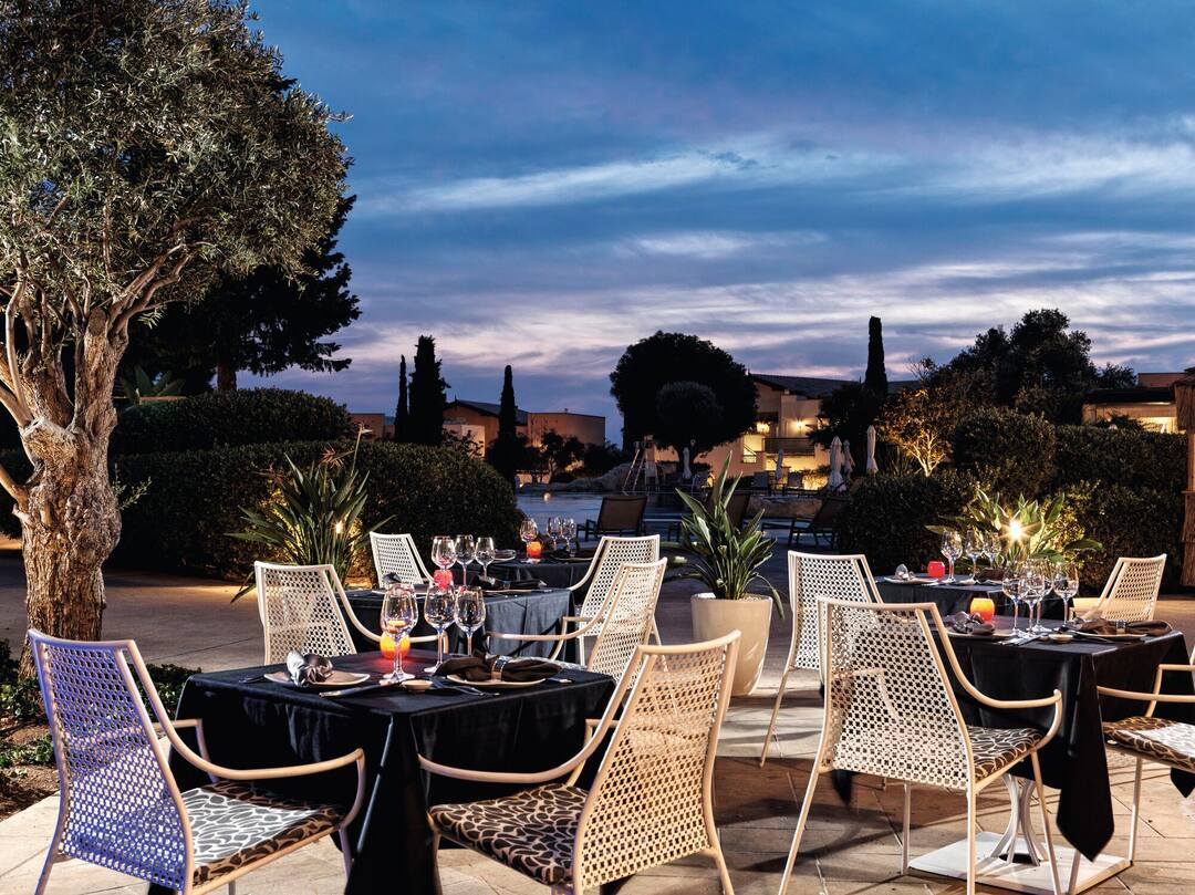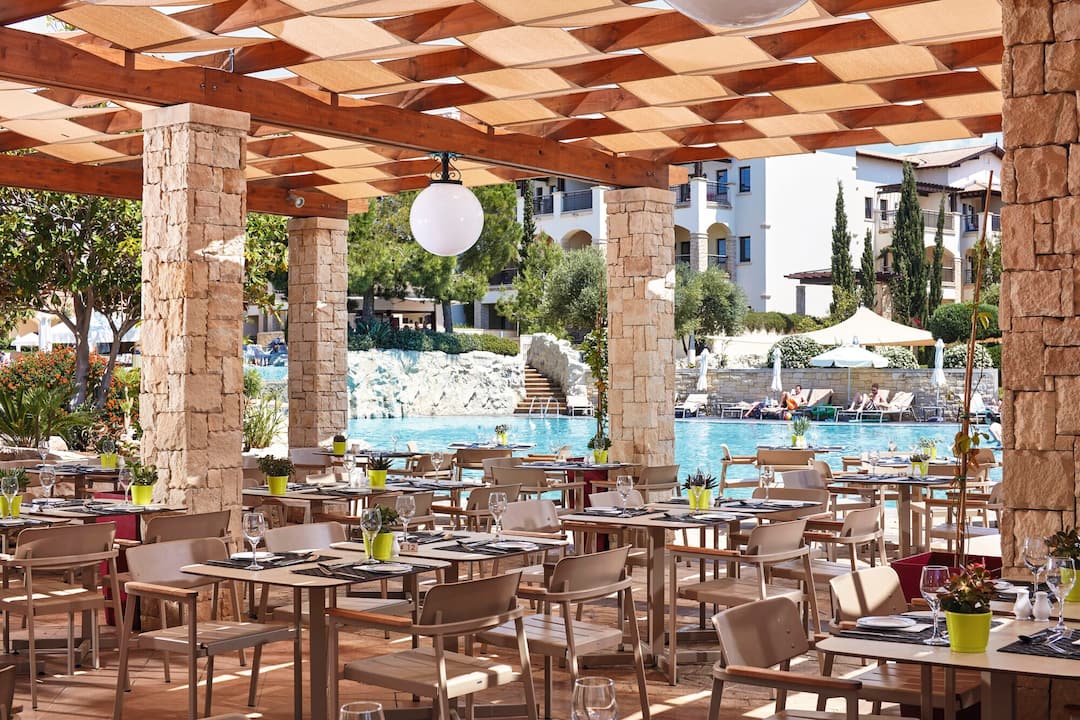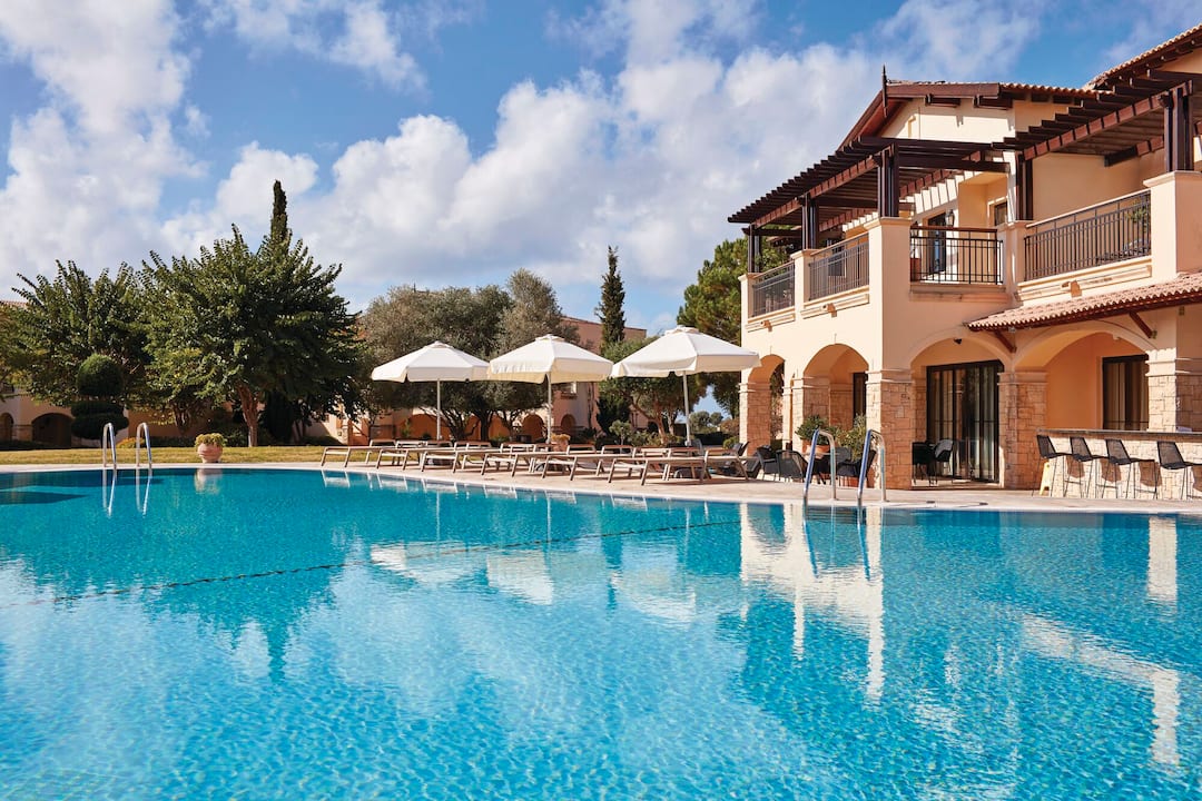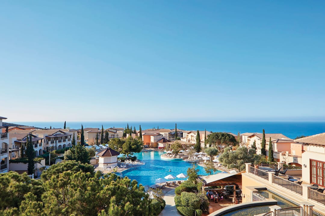 The Aphrodite Hills resort is where beautiful surroundings meet high-quality facilities to create a stunning holiday retreat. Located between Paphos and Limassol, the holiday resort of Aphrodite Hills overlooks the infinite blue waters of the Mediterranean. Built in traditional Cypriot style, the resort exudes a a peaceful, village-style feel. The resort is 3.5km away from Aphrodite’s Rock, 25km away from Paphos centre, and a 20-minute coach journey from Paphos Airport for easy transfers to and from your accommodation. The pretty pebble-strewn Zias beach is just a 20-minute drive away, with free shuttle buses running between the resort and the coast.