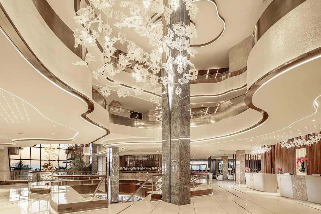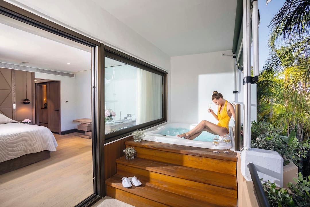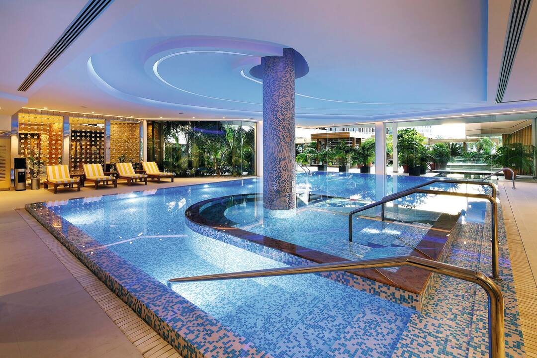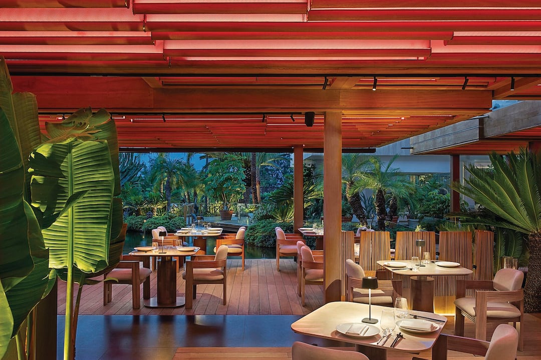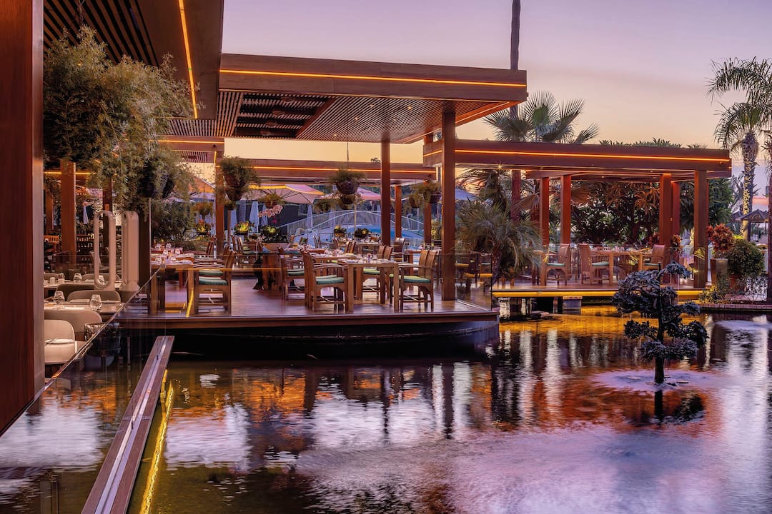 This place is a tropical paradise, and comes surrounded by lush gardens and inviting pools. The main pool has a children’s section and a slide, with banana plants hanging over the man-made rivers and bridges. Tucked away in one corner, there’s an adults-only pool with semi-submerged sunloungers. Both pools have bars where you can order drinks and snacks.