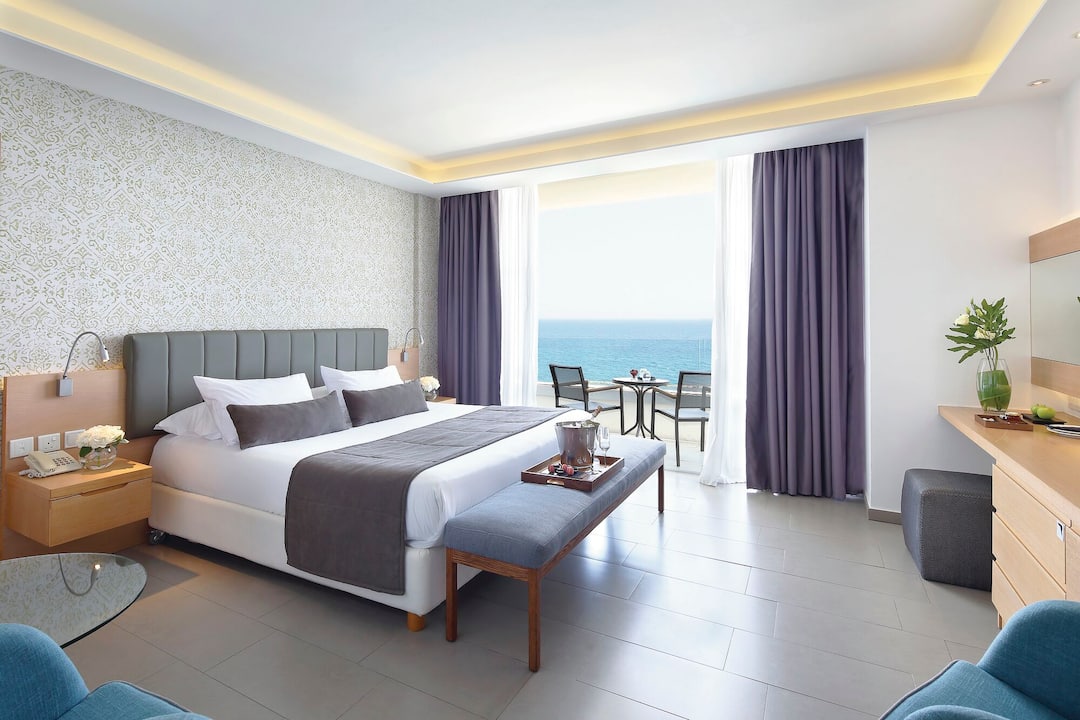 Limassol is blessed with 17 kilometres of fine, sandy beach, and the five-star Royal Apollonia Beach Hotel is perfectly ensconced on these golden shores. This elegant hotel boasts a selection of beautifully-appointed rooms and suites with inland or sea views. The outdoor Ocean Bar sits within the sparkling swimming pool, just steps away from the beach and crystal-clear waters of the Mediterranean. Three restaurants serve up a selection of culinary delights, from buffet-style to Greek meze and Japanese-inspired dishes. Enjoy your early-morning coffee or evening cocktails at the Aphrodite Lounge while soaking up the breath-taking views from the terrace.