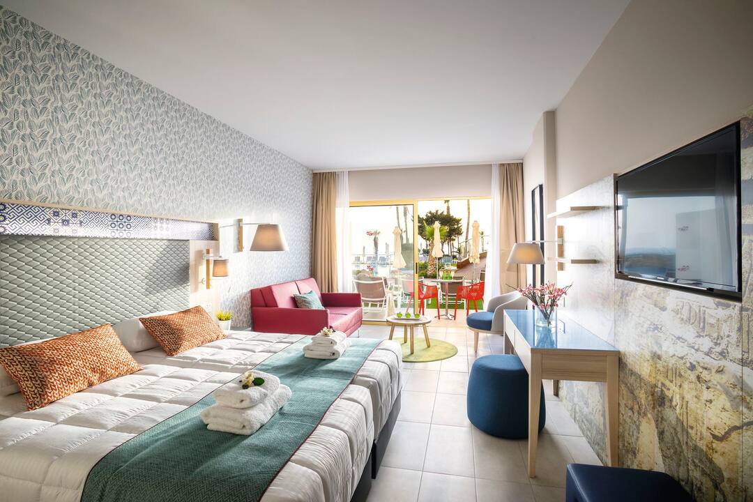 No need to worry about keeping the kids entertained at the Leonardo Laura Beach and Splash Resort, this recently refurbished hotel has its very own waterpark! Complete with Boomerango and Super Bowl water slides and a wave pool, the hotel is a hit with water babies young and old. A spa, sauna, jacuzzi and gym are also on-site. What’s more, it’s located just a few steps away from a sand-and-shingle beach. Paphos centre is 5km away with the nearest nightclub just 6km away. Buses run just 150m from the hotel, so exploring the area nice and easy.
