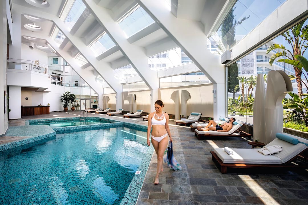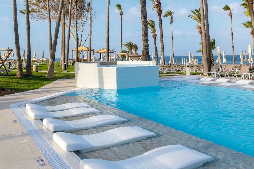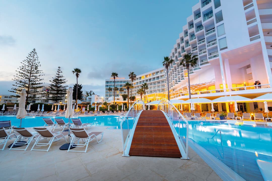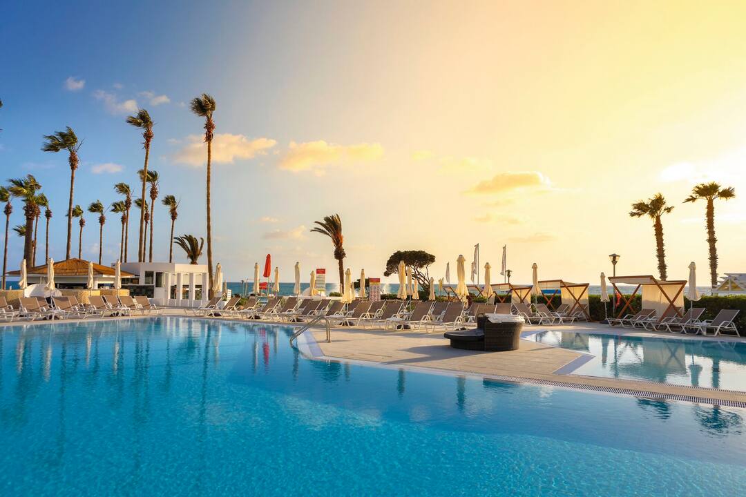 If luxury, tranquility and romantic vibes are high on your list of holiday must-haves, look no further than the exclusive Leonardo Plaza Cypria Maris Beach Hotel and Spa. This adults-only slice of paradise was fully refurbished in June 2017, so fresh features and modern decor are guaranteed. Located opposite a beautiful sandy beach, the hotel also features a large, curved pool complete with swim-up bar. Perfect for cooling off with a cocktail on long, sunny days. A gym, sauna, pool-side jacuzzi and hairdressing salon are just some of the additional facilities on offer at the hotel, along with a buffet-style restaurant and Greek taverna.