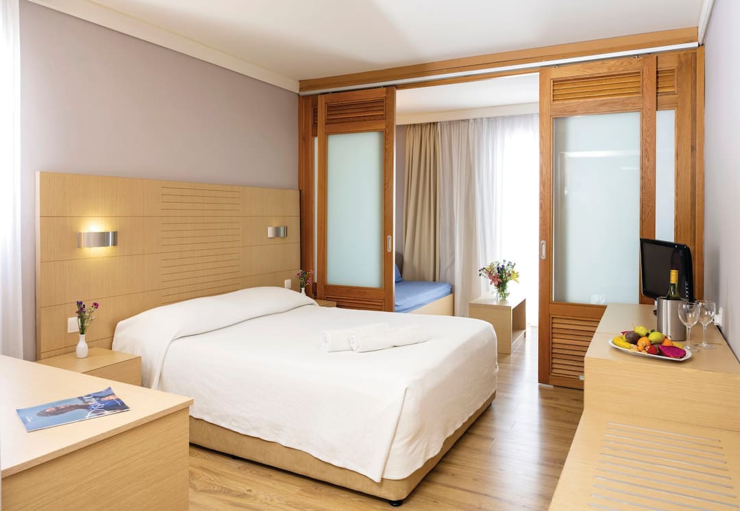 A member of the Louis Hotels group, the Louis Ledra Beach Hotel sits in a stunning beachfront location with a great selection of shops, cafés and restaurants just across the road. Outdoor and indoor pools await you, along with a vast array of facilities for all ages such as the kids’ club, games room and sauna. Two restaurants, beach bar, pool bar and hotel bar ensure everyone is catered for. Rooms are fresh and modern, and they have balconies. Luxurious honeymoon rooms are also available for loved-up couples. The hotel is situated just three kilometres from buzzing Kato Paphos Harbour.