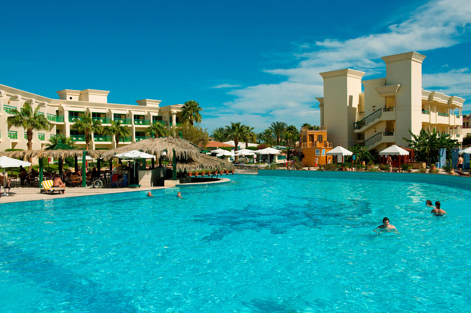 Guests really rave about mealtimes on TripAdvisor. Food’s served across three restaurants and there’s also a six-strong line-up of bars, including a swim-up number and a swanky cocktail joint.