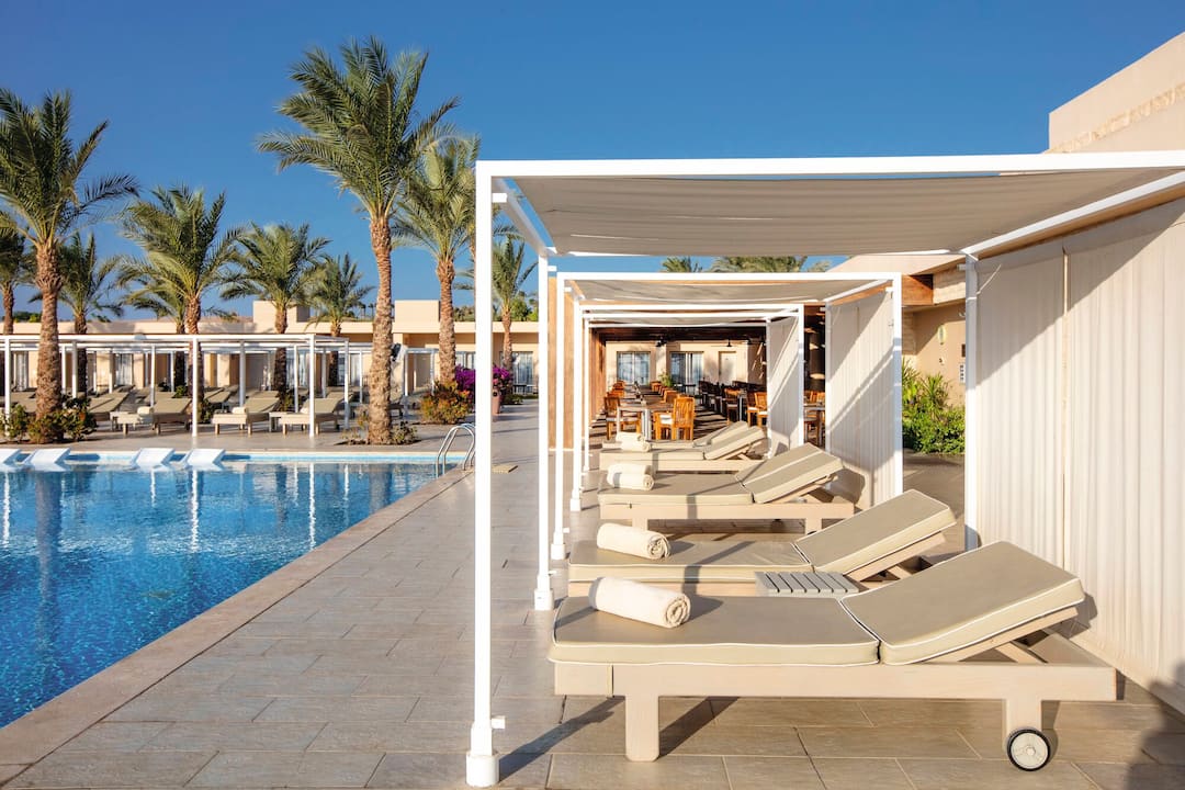 The hotel is an adults-only retreat and has a peaceful vibe around its pool scene. The main pool has in-water loungers and the sun terrace has shaded cabanas. Here, staff also deliver cooling towels to save you from the heat. Quiet and relaxing with sports on the doorstep, the Steigenberger Makadi is a little slice of luxury.