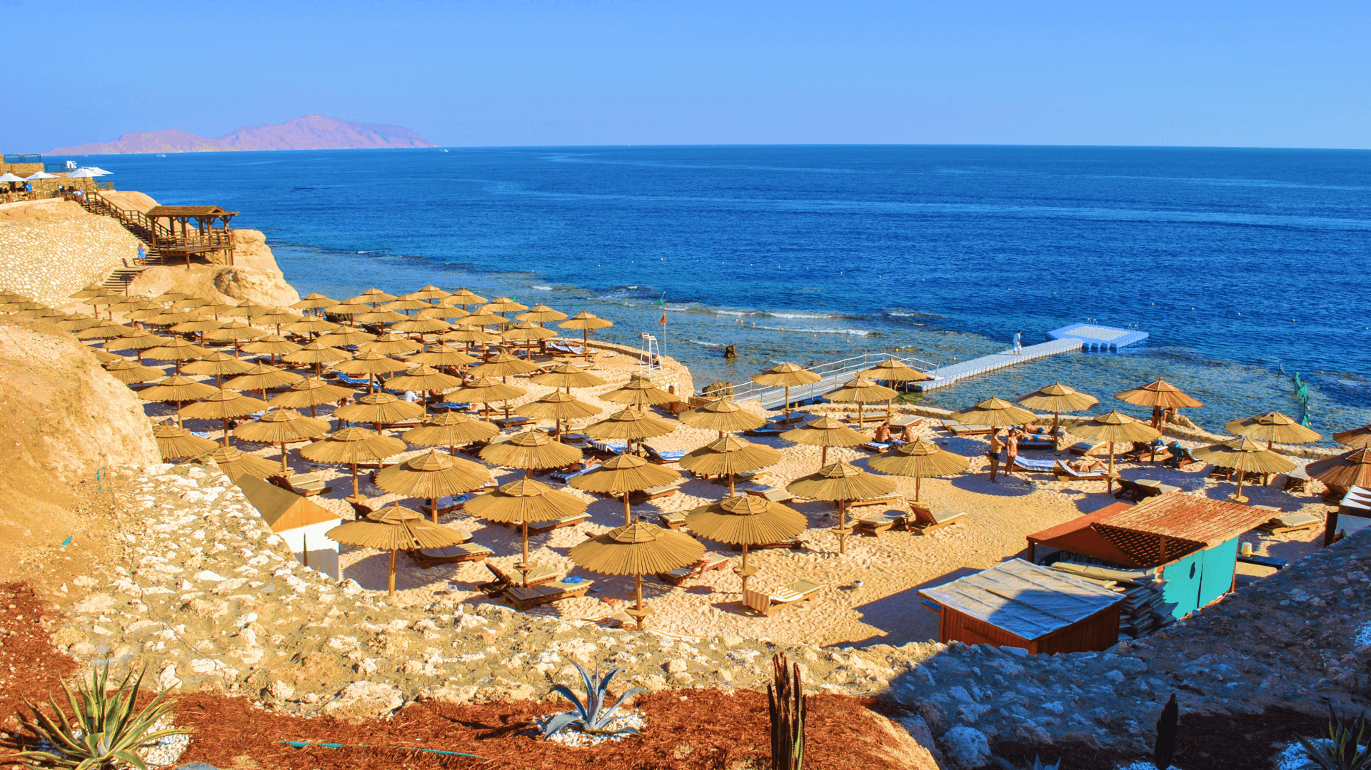 The bay is home to several varieties of coral and a rich diversity of sea life such as dolphins, eagle rays and pipefish. Just off the shoreline is a submerged replica of The Temple of Horus from Edfu, offering the opportunity to get a closer look at the marine creatures darting in and around ancient-looking buildings. Even if you don’t want to snorkel or dive, you can still see the underwater ruins from a walkway which starts at the beach and juts out into the bay.