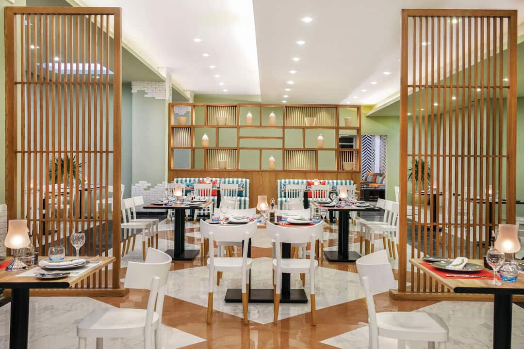 For meals, the main restaurant dishes out global grub for breakfast, lunch and dinner. You’ll also have seven watering holes for evening drinks. After dinner, you can watch the evening show at the amphitheatre.