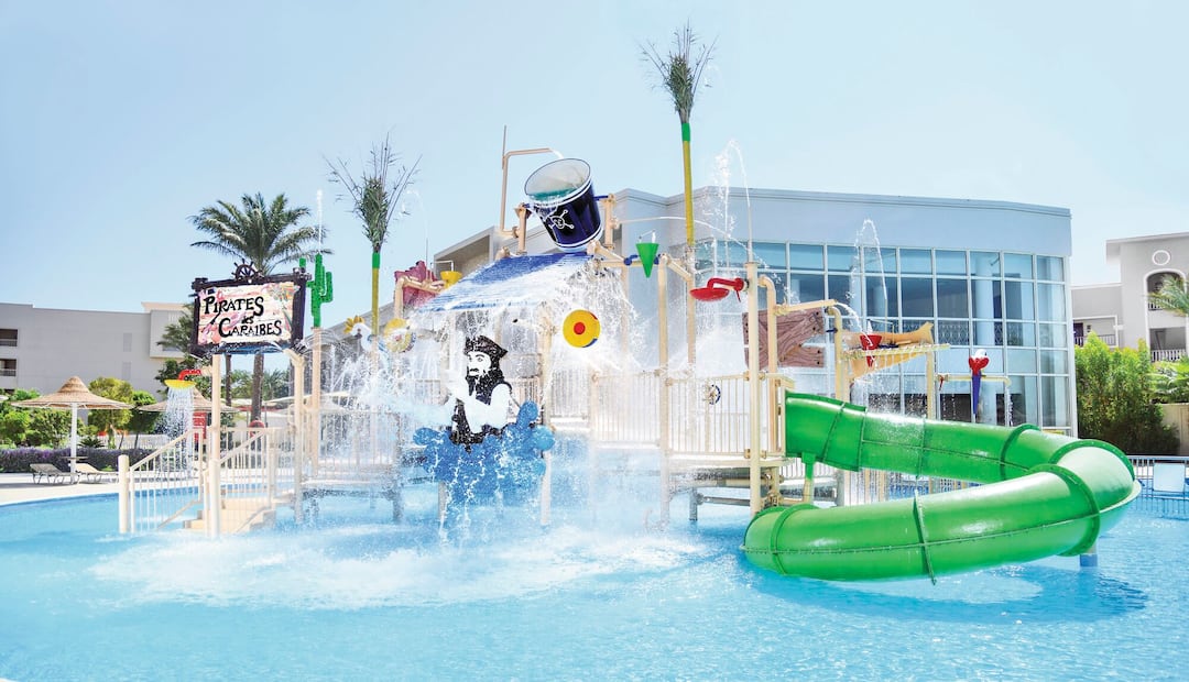 At the Sol Y Mar Soma Beach, the pair of huge pools that curve around the hotel’s grounds are just the warm-up acts. The real star is the pirate-themed splash park with slides and tipping buckets. Plus, sunbathing spots don’t end at the pool because loungers sprawl across the sand down by the sea.