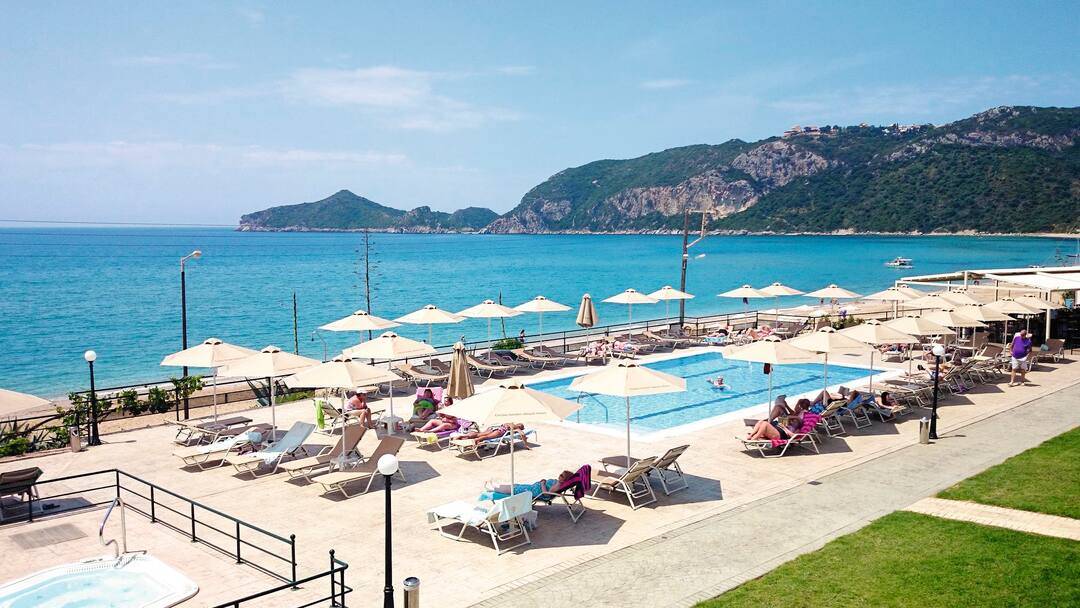 Aghios Georgios is a calm and scenic village in the North of Corfu, perfect if you want a more peaceful and authentic Greek island holiday experience. It has its own Blue Flag beach and is close to capital Corfu Town and party town. The resort is still untouched by the tourist trade, which makes it a special kind of getaway.