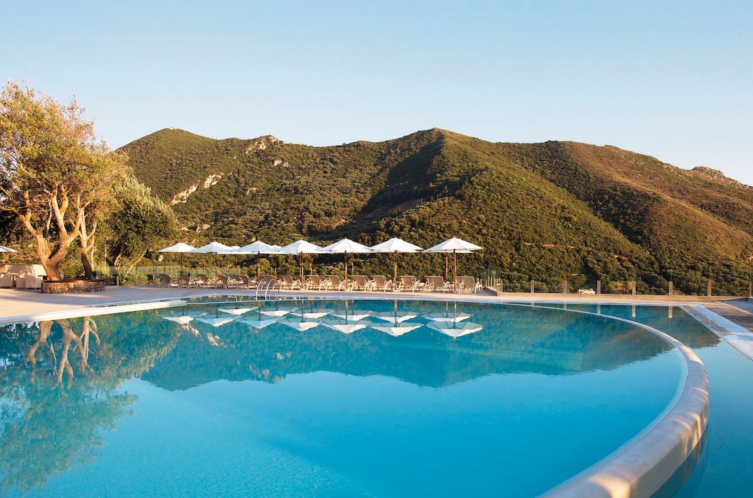 Take a dip in the pool and admire the mountain views looking out over Ermones Beach at the Atlantica Grand Mediterraneo Resort. Rooms are furnished in sleek and modern neutral colours to give a true sense of luxury, and there’s a footpath you can meander down that leads you straight to the shore. Grab a bite to eat at the à la carte restaurant, which also serves up panoramic views. There’s also a spa offering massage and indulgent body wraps, too.