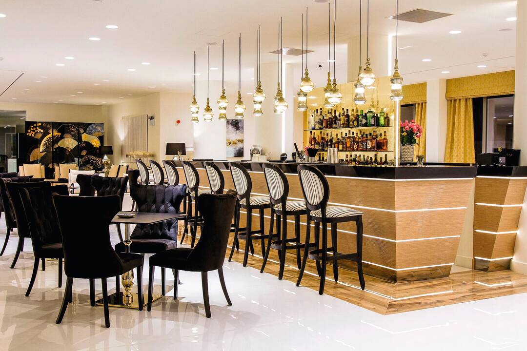 Outside, a pool is sunk into a terrace in the middle of the hotel’s perfectly preened lawns. Wooden loungers and cream cushions allow you to soak up the sun surrounded by luxury, while the nearby pool bar provides snacks to help keep you topped up. For mealtimes, you’ll have the choice between buffet and an a la carte.