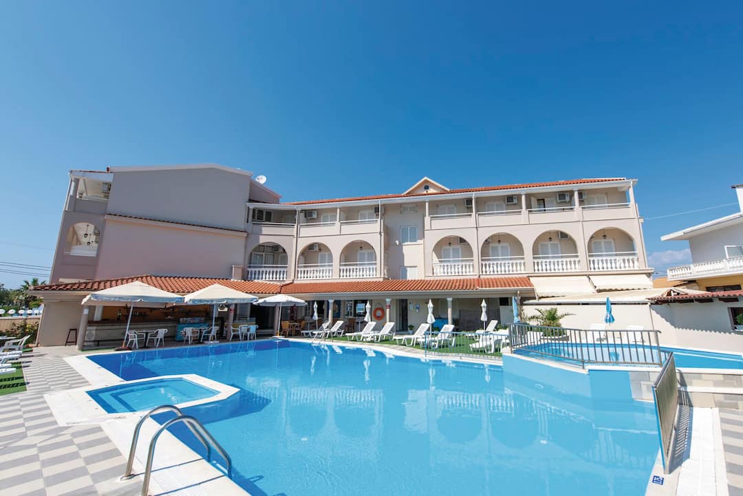 The hotel’s rectangular pool comes with a built-in hot tub and a section for kids, and the restaurant boasts a modern yet rustic decor. The menu is mainly classic Greek dishes, but there are some British favourites. You can also grab a light meal or snack at the cocktail bar, which has a sea-facing terrace.