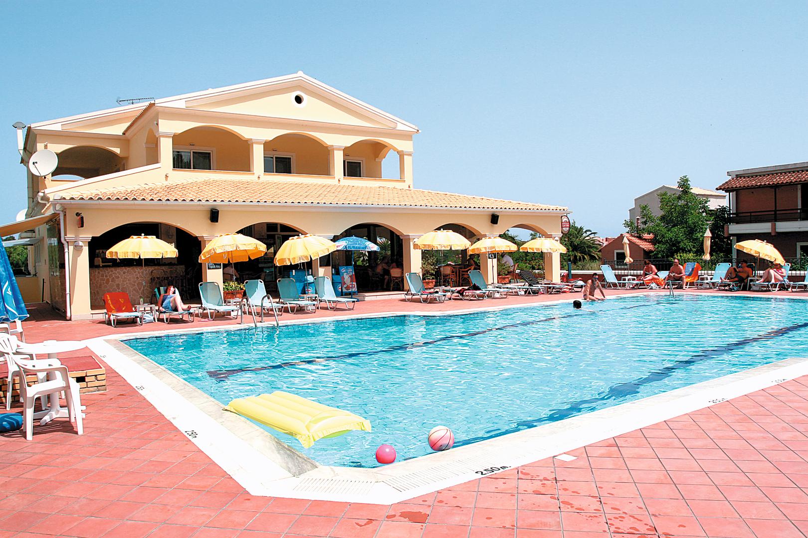 These family-run apartments and studios boast a welcoming atmosphere and home-from-home feel about them. They are freshly decorated and each apartment conveniently has a small kitchenette. Mouth-watering Greek dinners are cooked every night for you to enjoy, and you can join the family on Greek nights for plate-smashing and traditional dancing, sure to make a holiday to remember! The large, central pool – and small paddling pool for children – is surrounded by a generous sun terrace with loungers, parasols, a pool-side snack bar and TV in the bar, which plays big sports events. It’s also the main venue for evening entertainment.