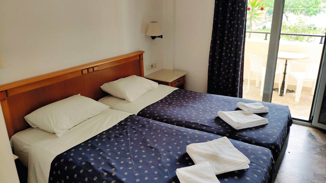When you head to the family-run Tondoris Studios and Apartments, you can expect a warm welcome from the friendly staff. The pool is the star of the show at the hotel, though. Set within the grounds, it’s huge, and is perfect for swimming a few lengths. There’s also a separate area for kids and a backdrop of perfectly manicured lawns.