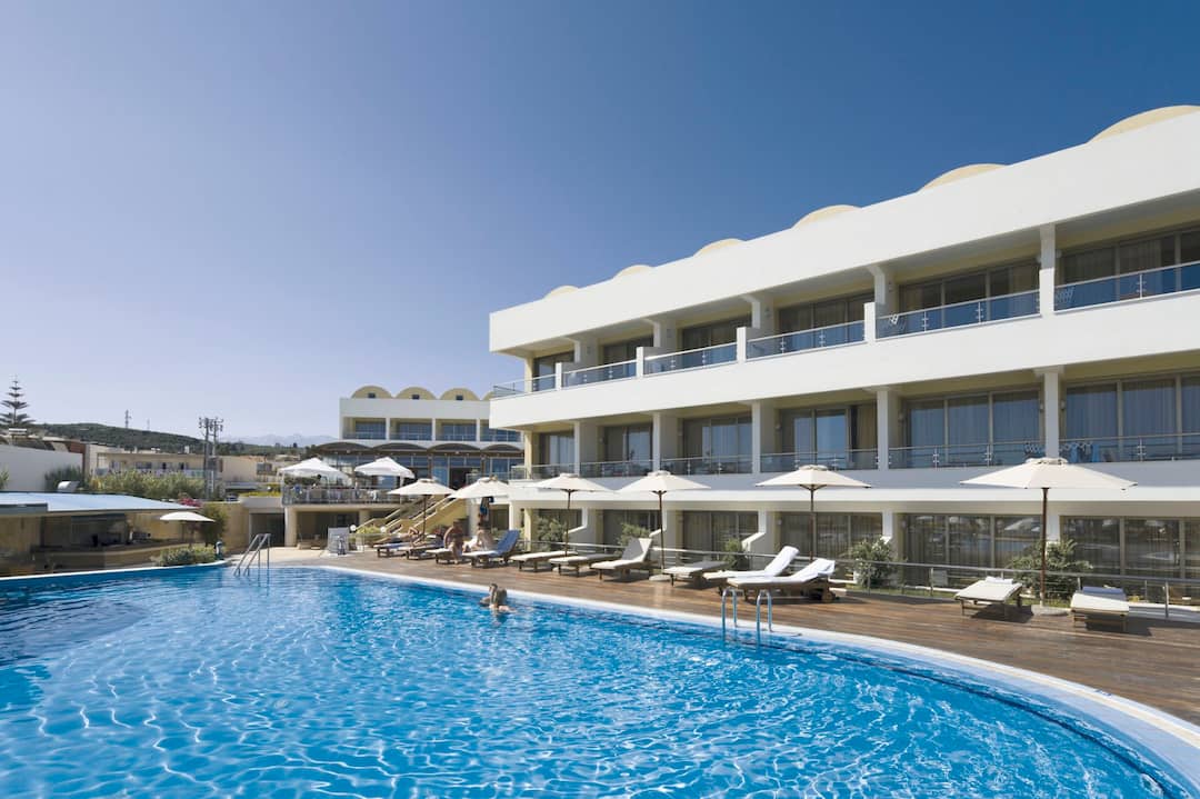 The traditional Greek resort of Aghia Marina is nestled in the northwest coast of the island of Crete. This quiet and relaxed town invites you to experience an authentic Greek lifestyle, with its spectacular scenery and long white sandy beach. Although peaceful, it still has all the amenities required for an easy-going holiday, including plenty of restaurants serving traditional Greek dishes, as well as bars, clubs and an array of fantastic watersports.