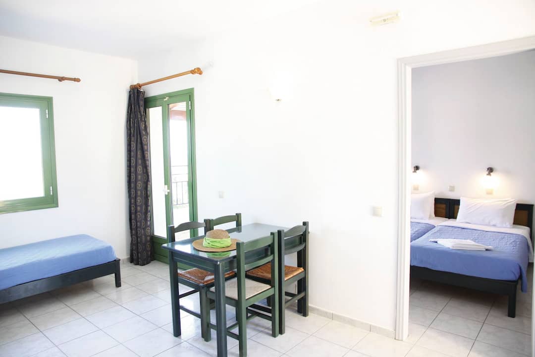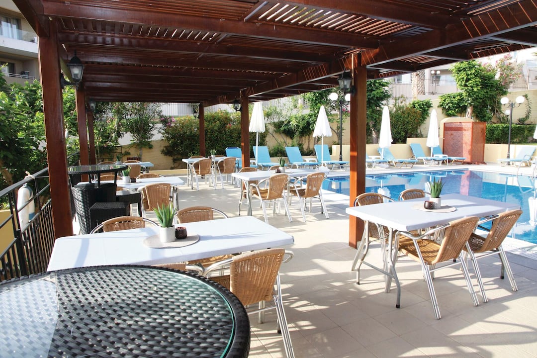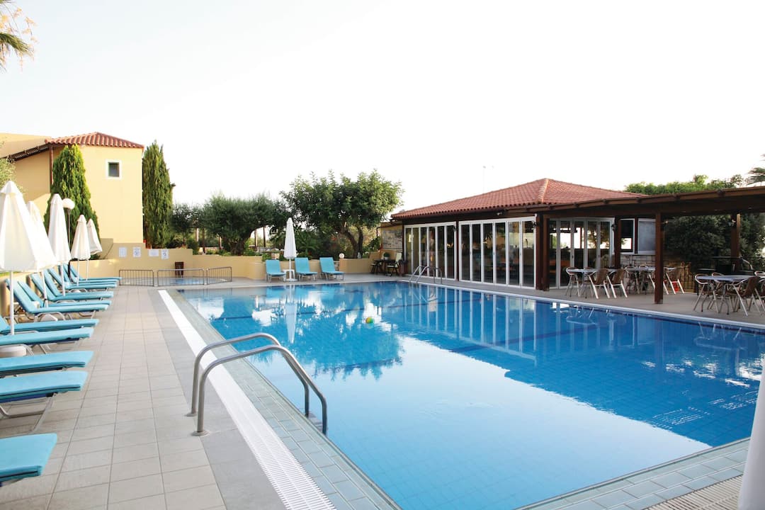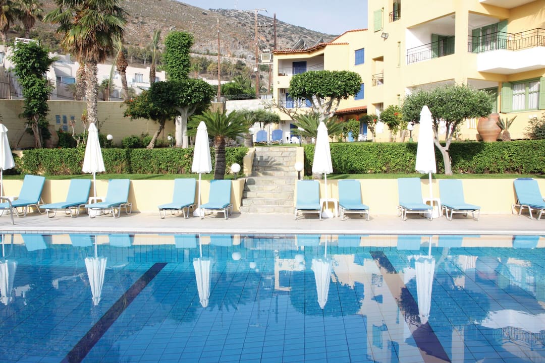 Relaxed and informal, the low-rise Sylvia apartments have a hillside setting and well-kept gardens providing the perfect venue for relaxing days. The pool is surrounded by loungers, parasols and a garden area, and there’s a separate shallow pool, which is ideal for little ones. When hunger strikes, the poolside snack bar serves a selection of light bites, including omelettes and cooked breakfasts. You can decide to self-cater, too, with apartments providing a kitchenette. There’s a small supermarket just a five-minute walk away for all of your self-catering provisions. Socialise at the bar in the evenings and enjoy a Greek night once a week.