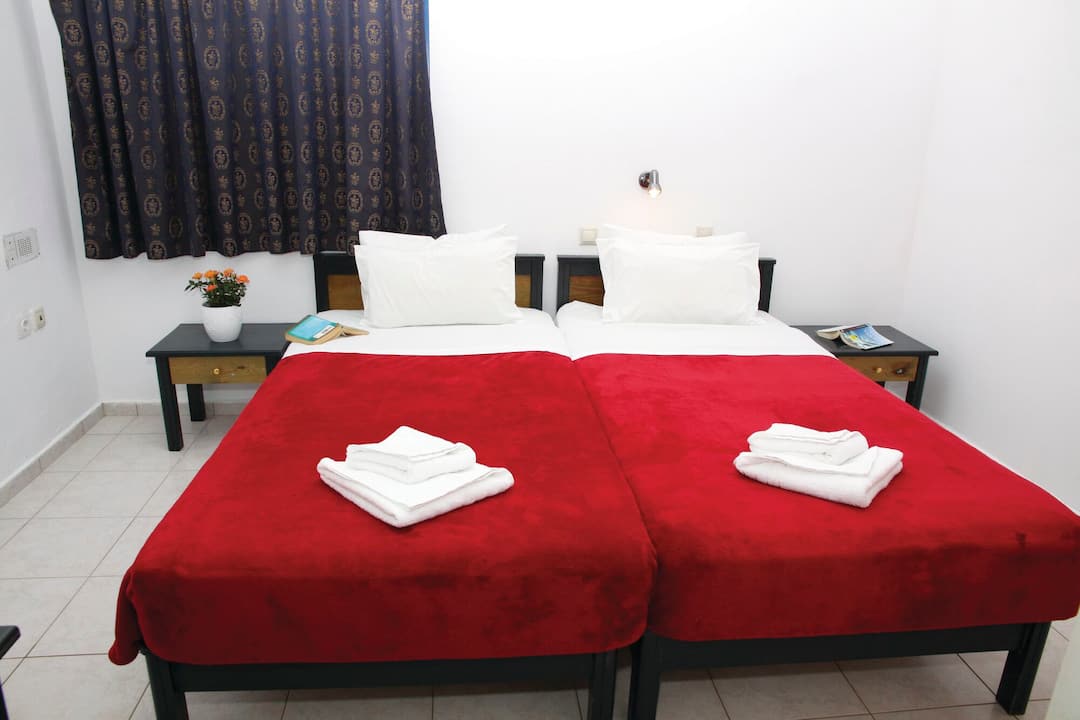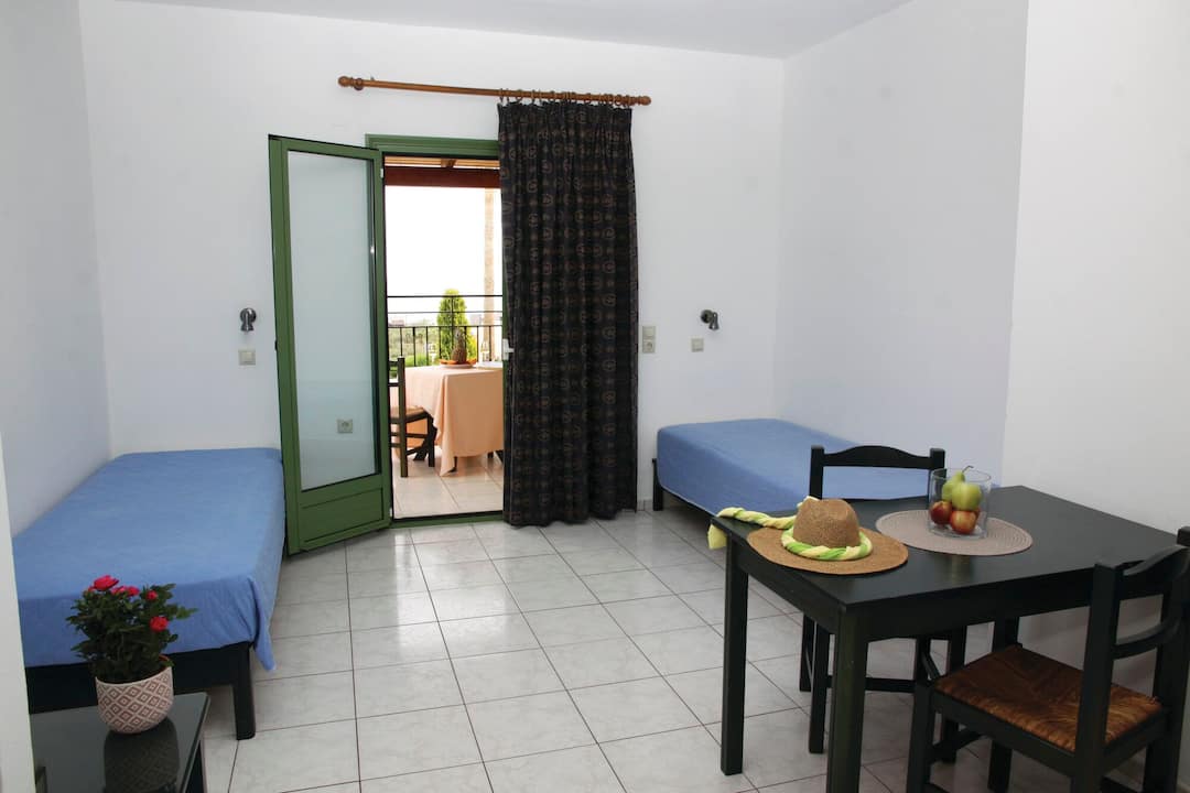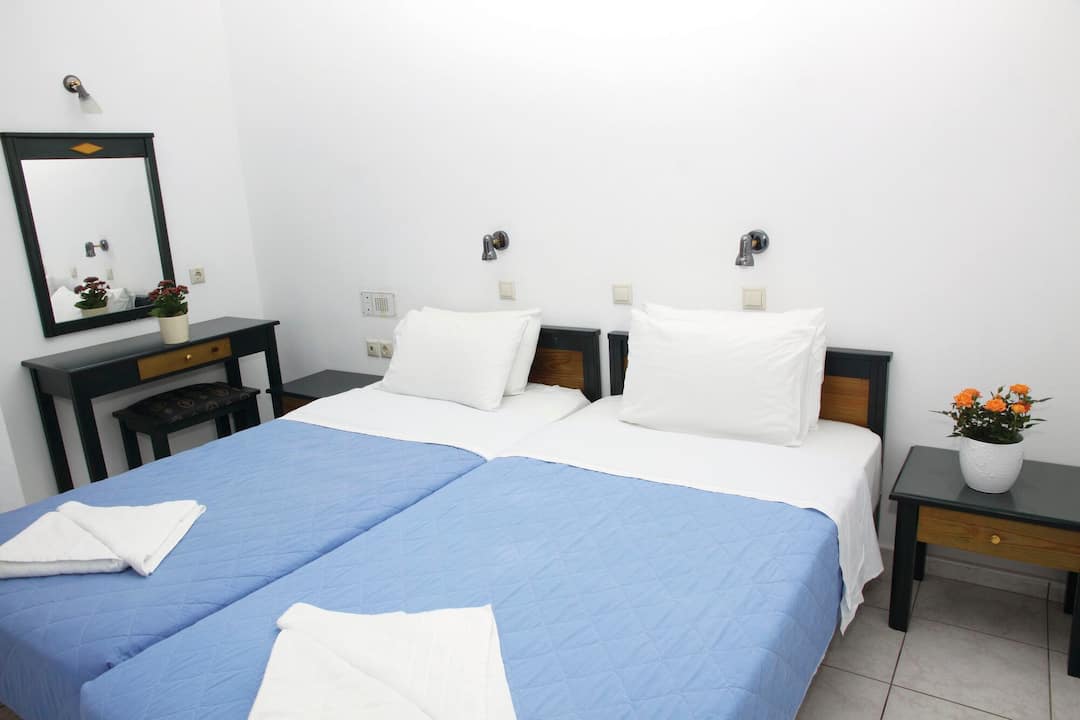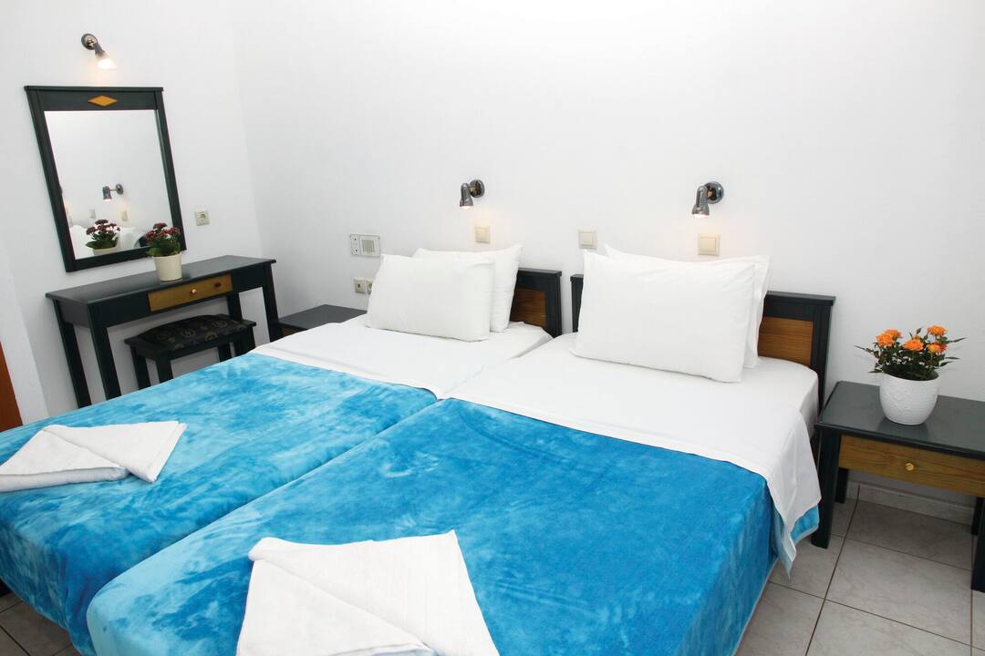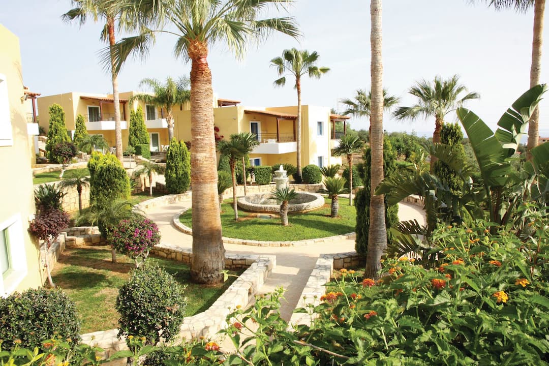 Relaxed and informal, the low-rise Sylvia apartments have a hillside setting and well-kept gardens providing the perfect venue for relaxing days. The pool is surrounded by loungers, parasols and a garden area, and there’s a separate shallow pool, which is ideal for little ones. When hunger strikes, the poolside snack bar serves a selection of light bites, including omelettes and cooked breakfasts. You can decide to self-cater, too, with apartments providing a kitchenette. There’s a small supermarket just a five-minute walk away for all of your self-catering provisions. Socialise at the bar in the evenings and enjoy a Greek night once a week.
