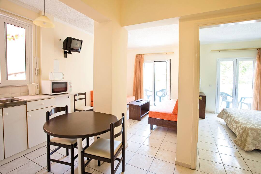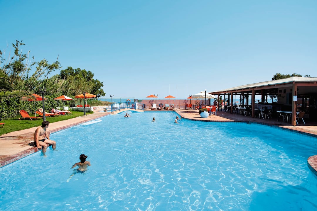 Nestled on a quiet street, Bueno Aparthotel is just a two-minute walk from sandy Platanias Beach whose sands stretch 8km into Rethymnon. The quaint hotel sits on a peaceful street in attractive gardens, with two pools, one with beautiful views of the beach. There’s also a buffet restaurant with continental breakfasts as well as an international spread for dinner. Or you can just enjoy the two bars serving drinks and hot snacks. A 15-minute drive away is Rethymnon’s old town and pretty Venetian harbour. Bueno Aparthotel is perfect if you’re looking for a tranquil retreat and is a brilliant all-rounder.