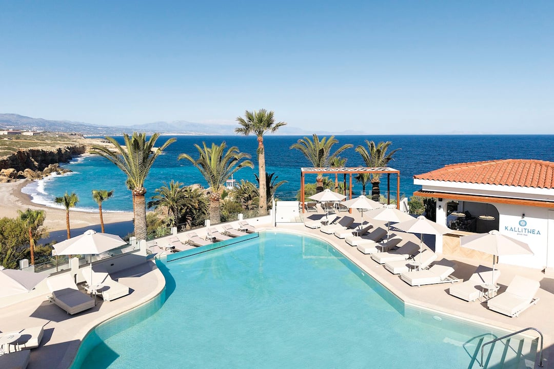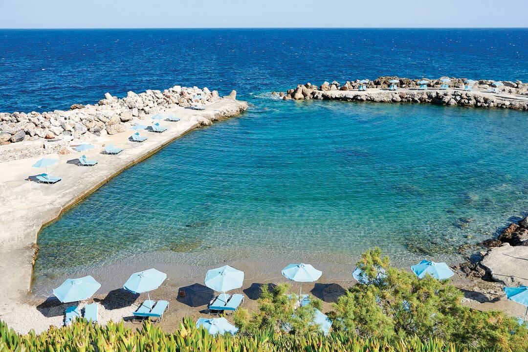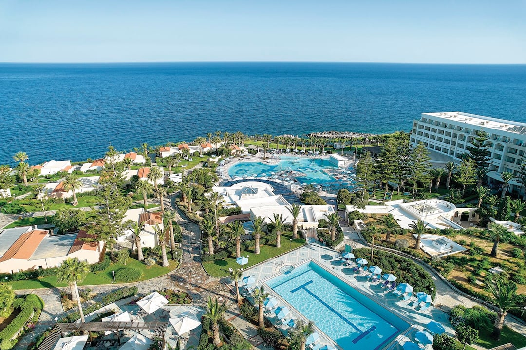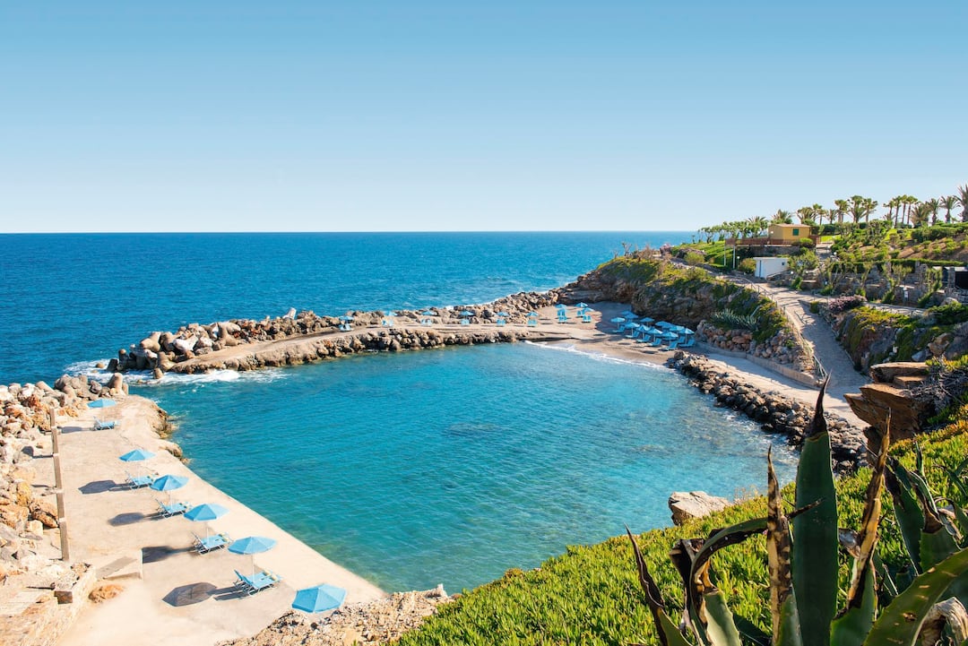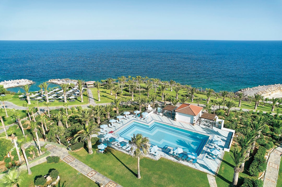 Perched on a cliff with stunning panoramic sea views, the location of the Iberostar Creta Panorama and Mare is quite something. The whopping six pools aren’t too shabby, either. The lush grounds are palm-tree lined, with plenty of spots to enjoy a lazy day on the sun-bed. There’s a swim-up bar, too, along with a buffet restaurant and another Italian trattoria. The kids have their own pool. By day, there are loads of sports and activities, and come evening, live entertainment is laid-on, and the music bar has a DJ spinning well into the small hours.