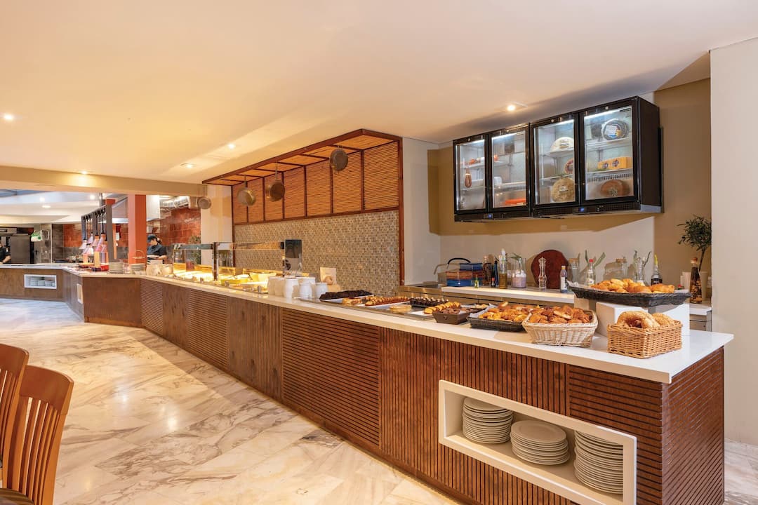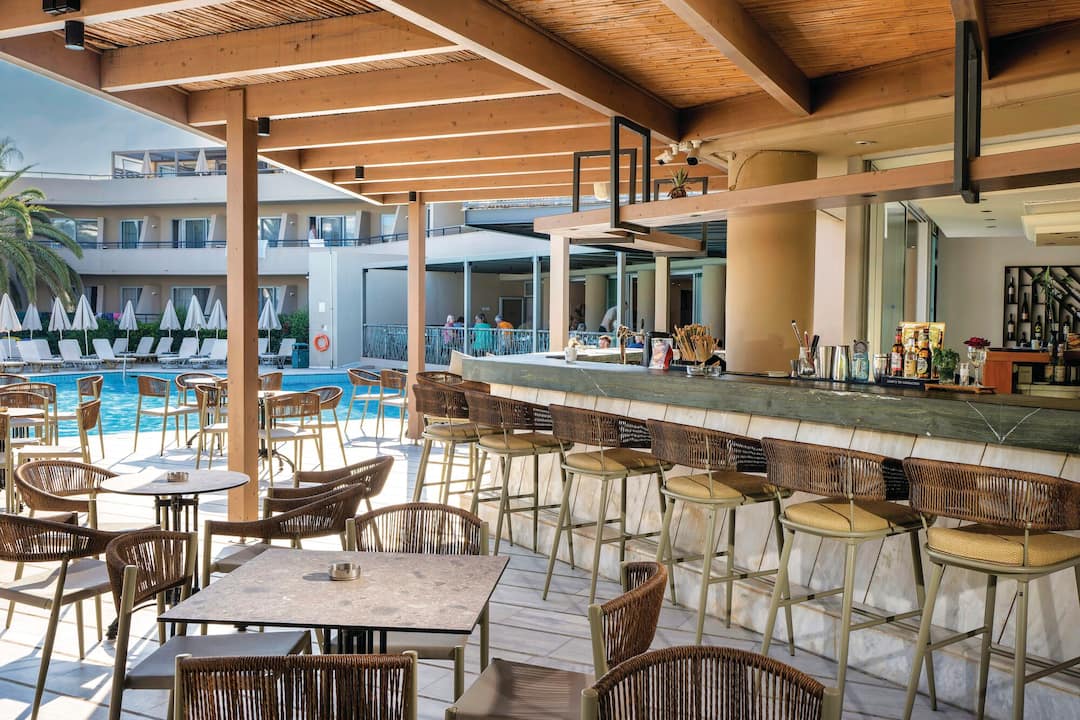 Main meals are served at the Ambrosia restaurant where there’s a globe-trotting mixture of international dishes and Greek specialities. In the evening, the whole family will enjoy a lively mix of cabaret acts, magic shows and pool parties.
