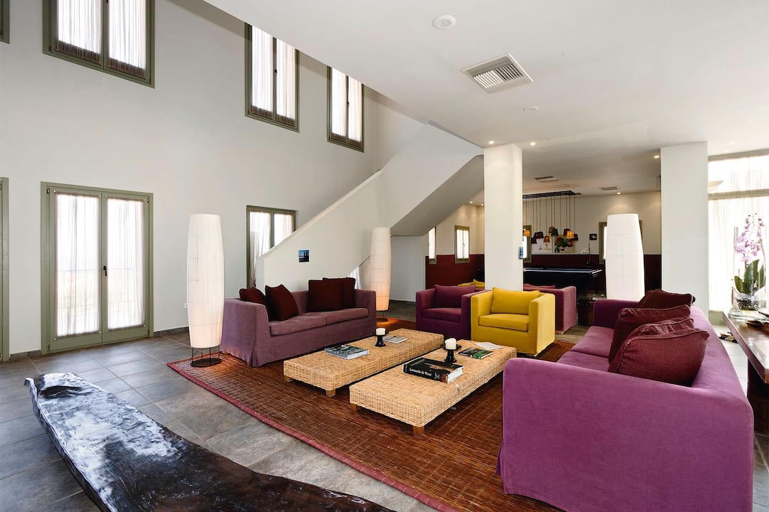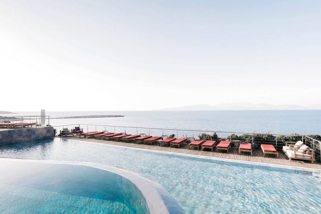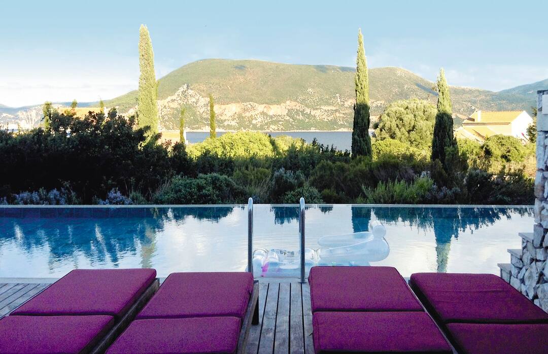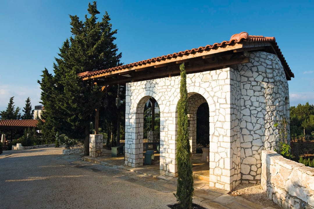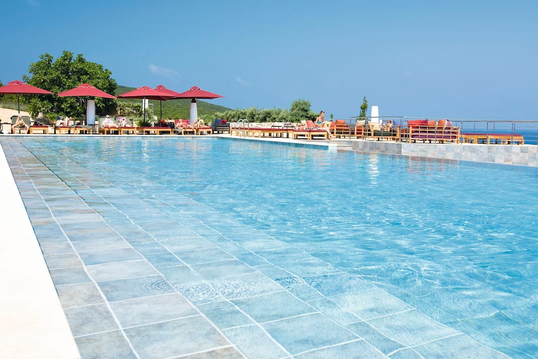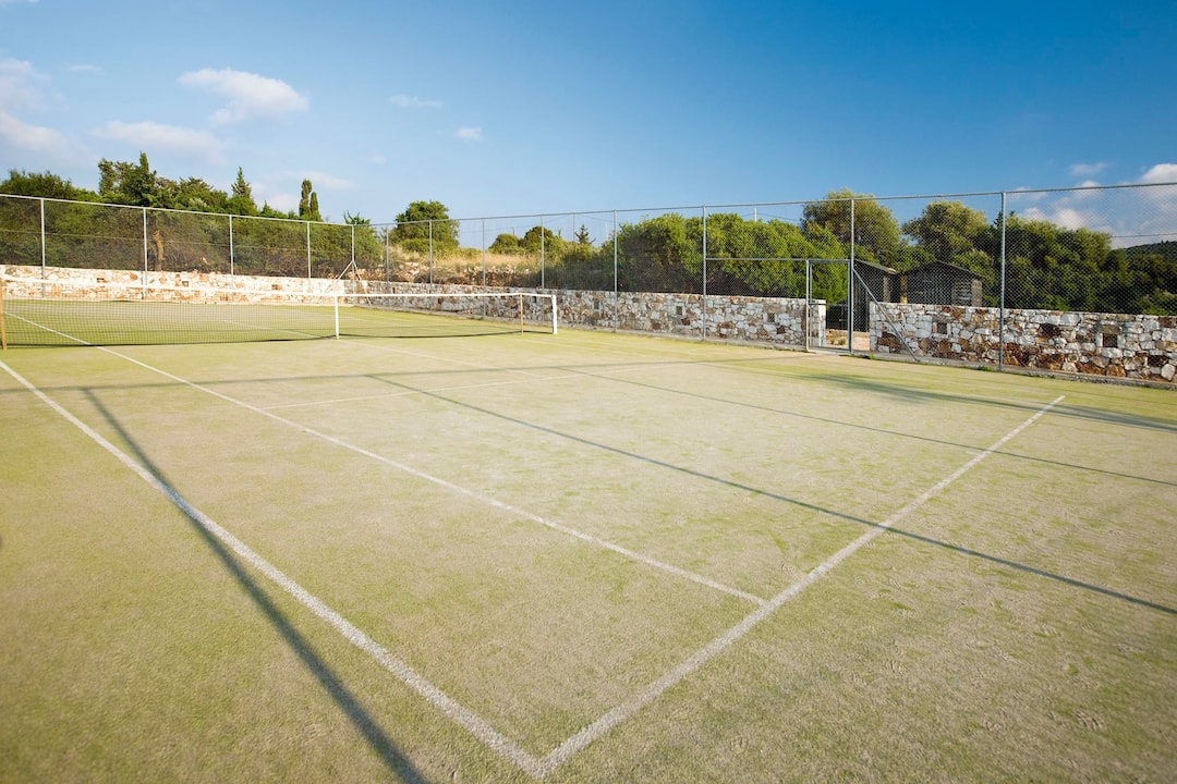 The hotel has been designed to look like a cluster of villages. Surrounded by cypress and cedar trees, it provides beautiful views over Ithaca. For a spot of additional luxury, there’s a walk-in infinity pool with views over the bay. There’s also a tennis court and a squash court.