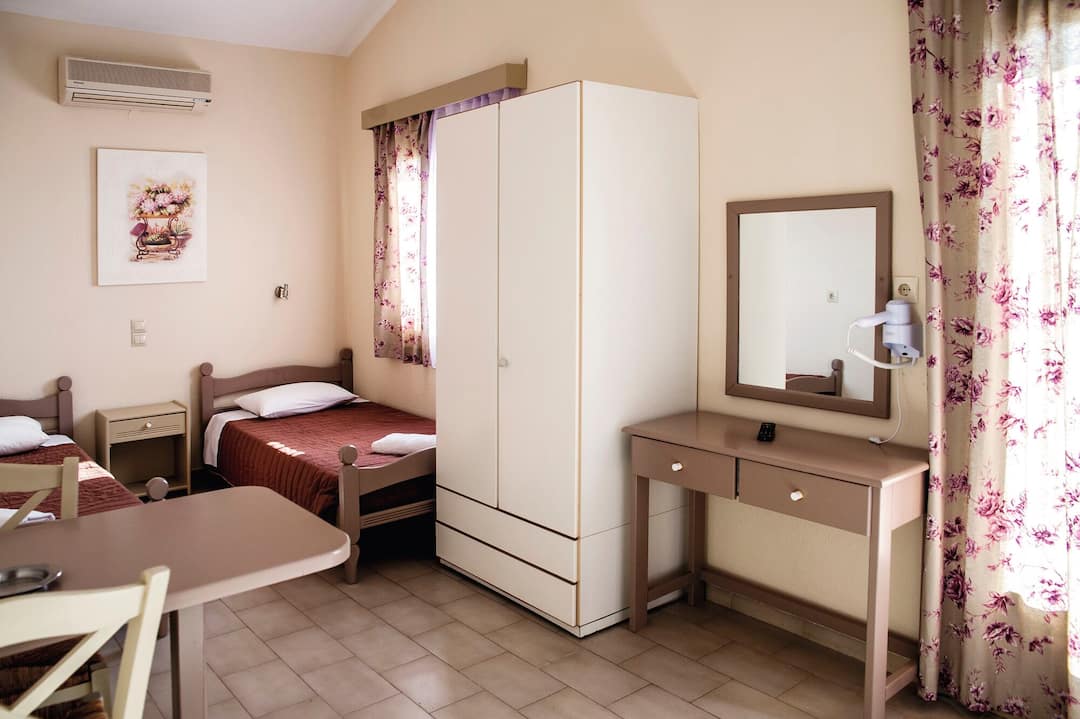 The Nikos Studios and Apartments are a family run paradise offering a laid back vibe and panoramic sea views. Just 15 minutes’ away from the beach and restaurants, the studios are in a prime location away from the hustle and bustle but close enough to pop down whenever you fancy it. On the complex you’ll enjoy a reasonably sized swimming pool with a spacious sun terrace filled with sun loungers and palm trees – from which you have sweeping views of the Ionian Sea. All of the studios and apartments come equipped with a kitchen and dining area so you can cook up all your favourite dishes, or you can head across to the local taverna that’s just opposite. Treat yourself to that much needed break with your loved ones at Nikos Studios and Apartments.