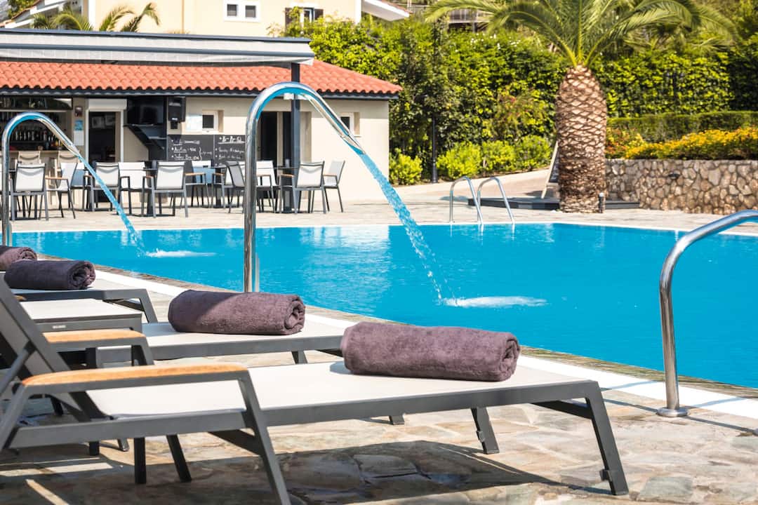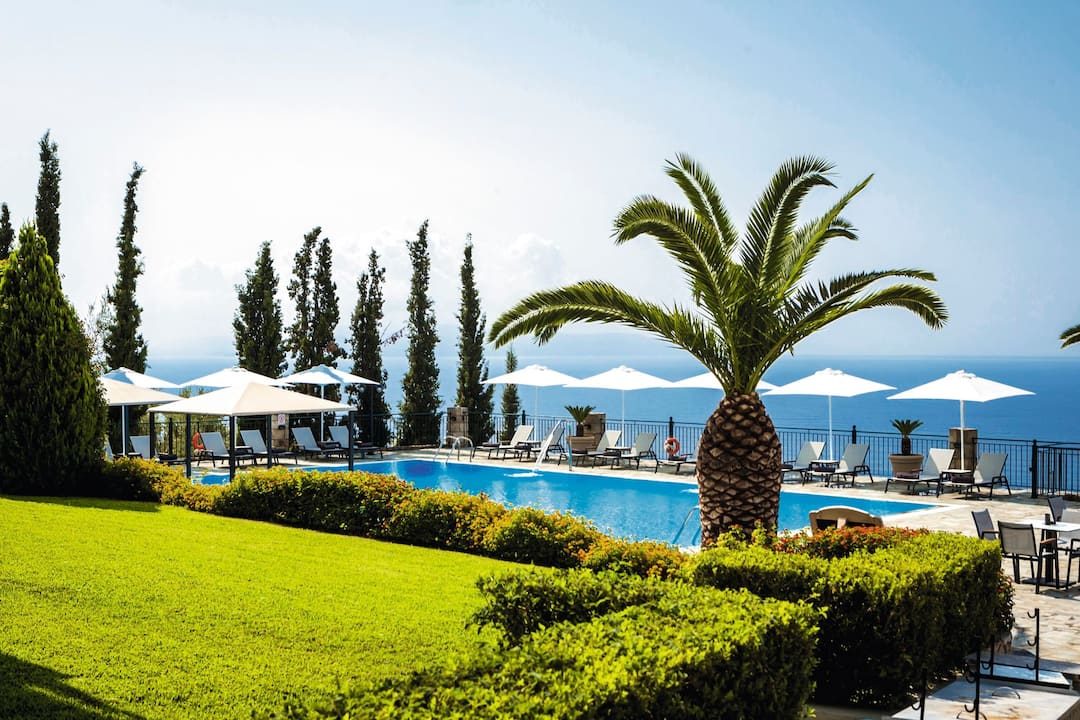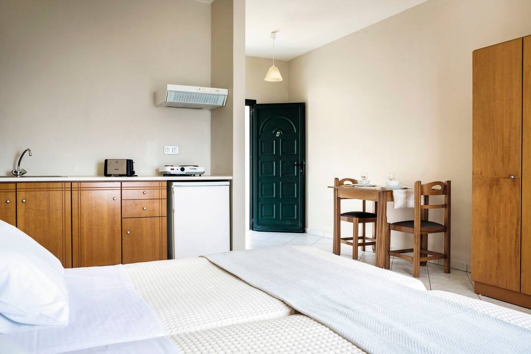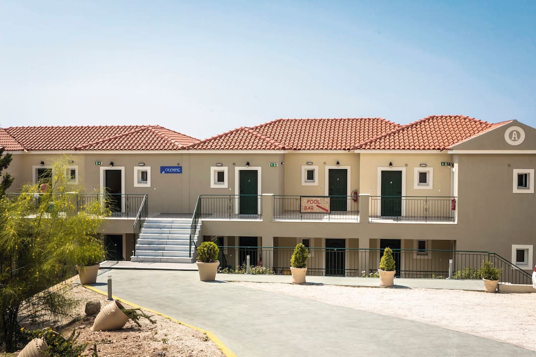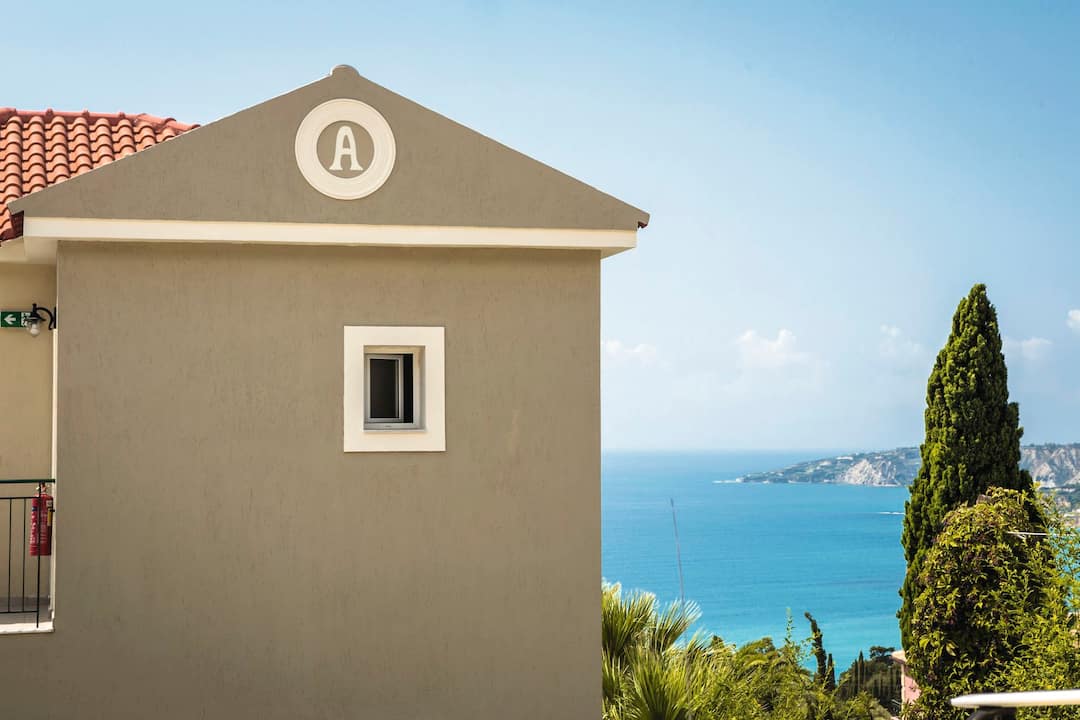 It’s a self-catering set-up at the Antonia Hotel, so each studio comes with a kitchenette. A collection of loungers and parasols gather around the edge of the rectangular pool, and just a few steps away there’s a snack bar. This whole area overlooks the Aegean Sea, and you can see as far as Zante on a clear day.