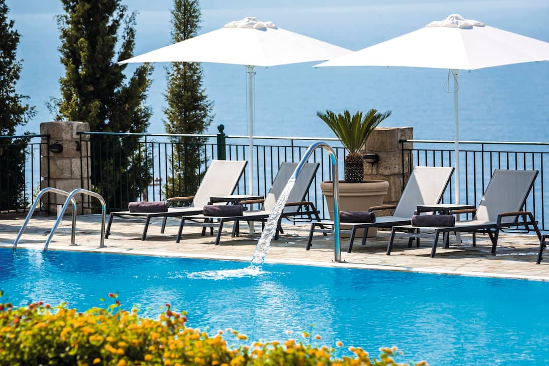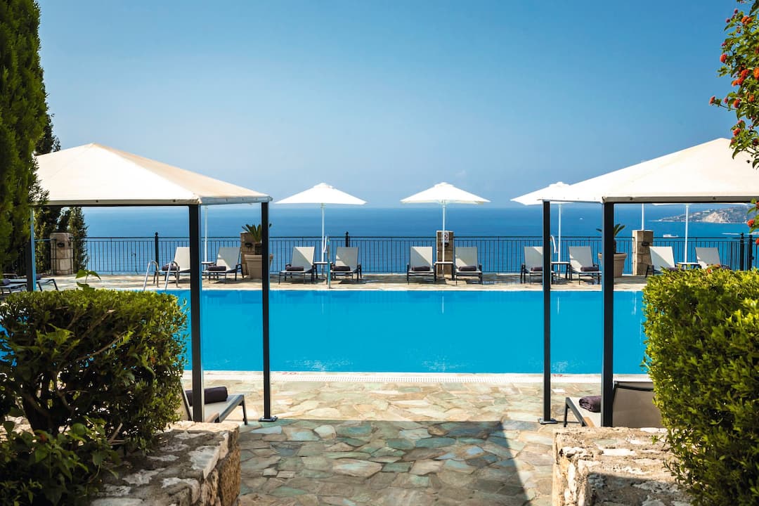 The Antonia Hotel sits on a peaceful hillside street that’s a five-minute drive from one of Kefalonia’s best stretches of sand – Lourdas Beach. It stretches for more than two kilometres and it’s a safe spot for swimming. There aren’t many water sports, but you can hire a pedalo.