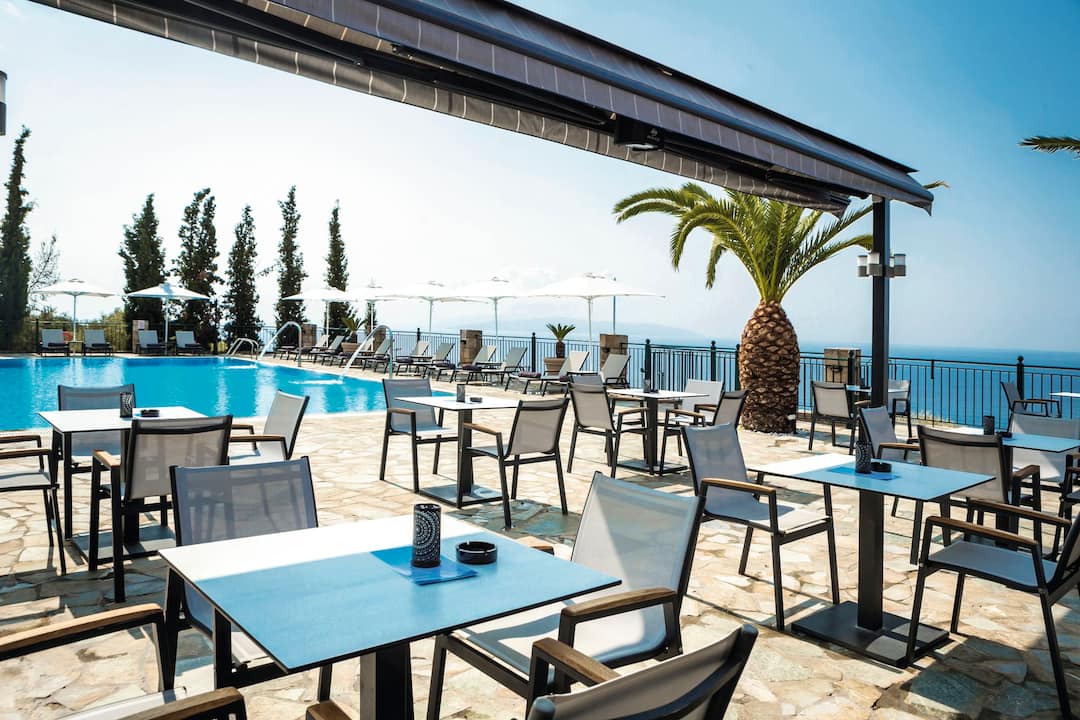 Once a week, the hotel hosts a traditional Greek night where you can pile your plate high with freshly grilled meat. There’s also traditional dancing and music before the evening ends with a fireworks display.