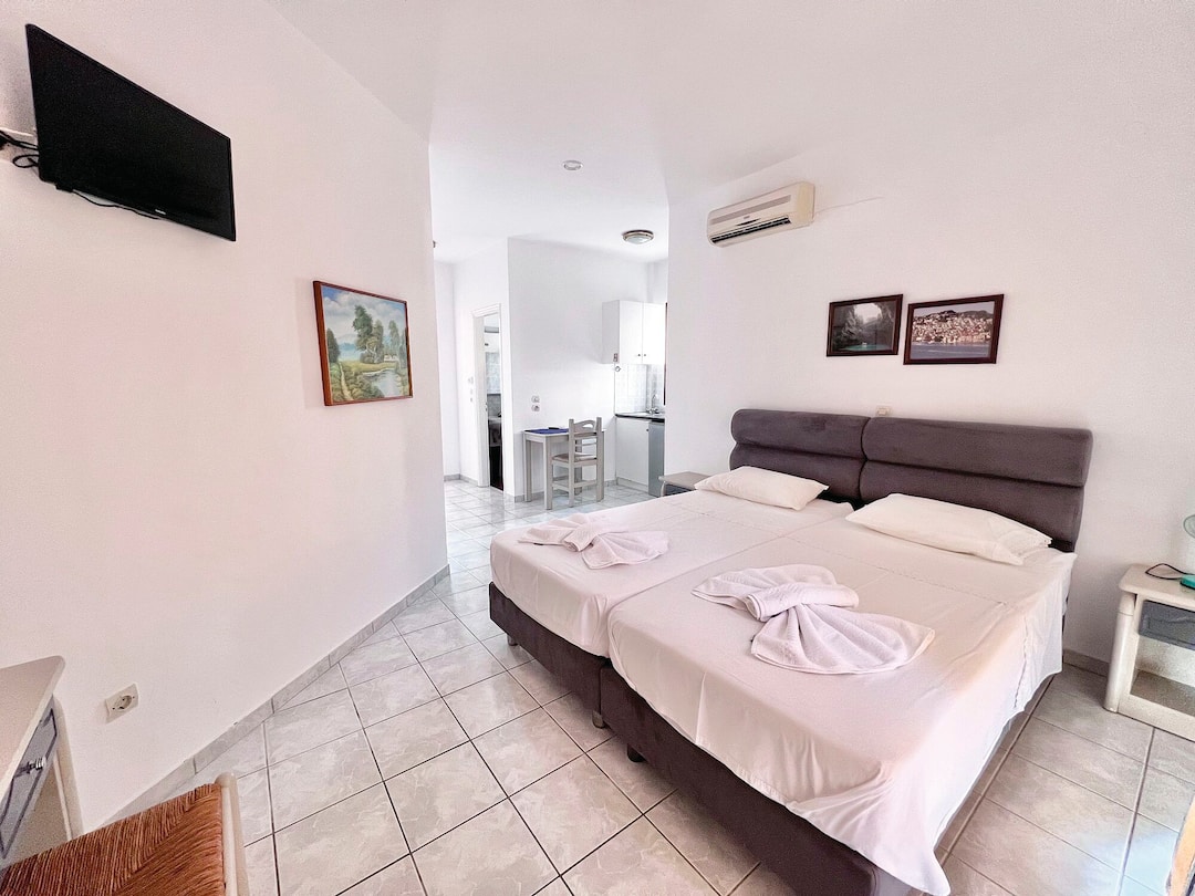 Although there’s a secluded feel to the Aristomenis Studios, you’re only a 10-minute walk away from the nearest tavernas – and they all specialise in homemade food and hearty portions!
