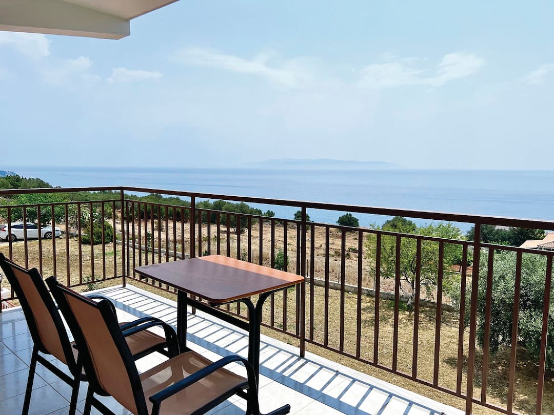 A colonnaded balustrade gives the pool a classical feel. It’s accessorised by a lounger-sprinkled sun terrace where on a clear day, you can see as far as Zante. Nearby, a bar dishes out drinks and snacks.