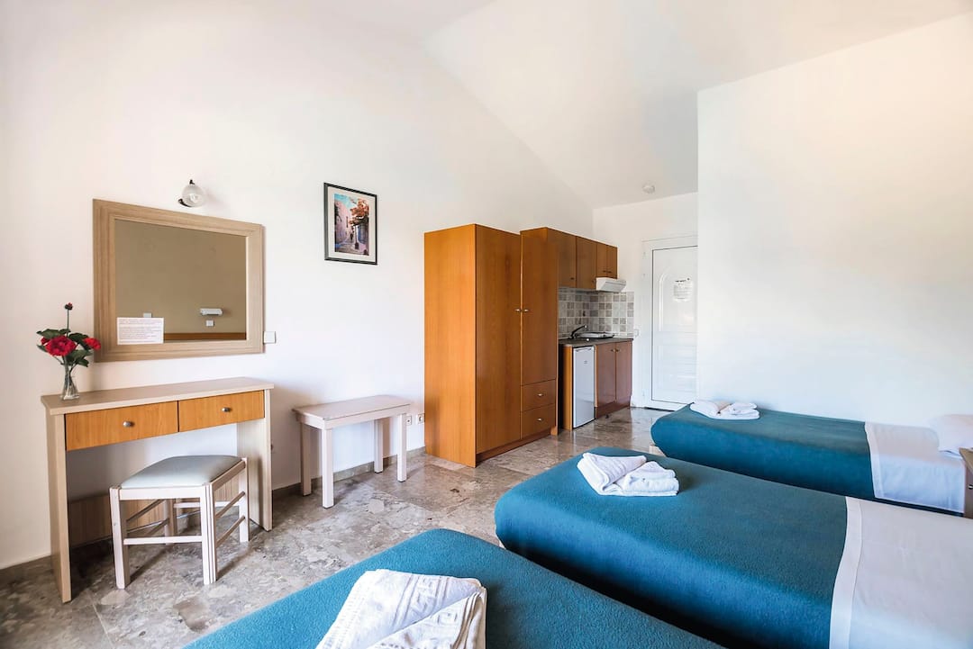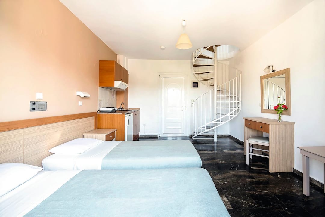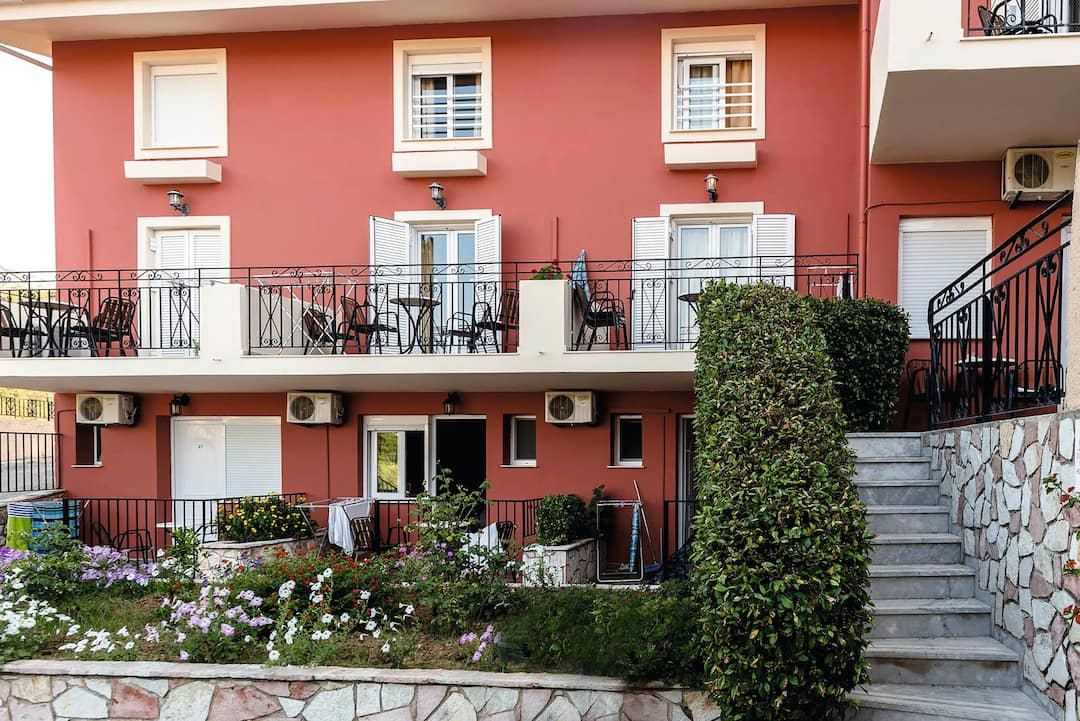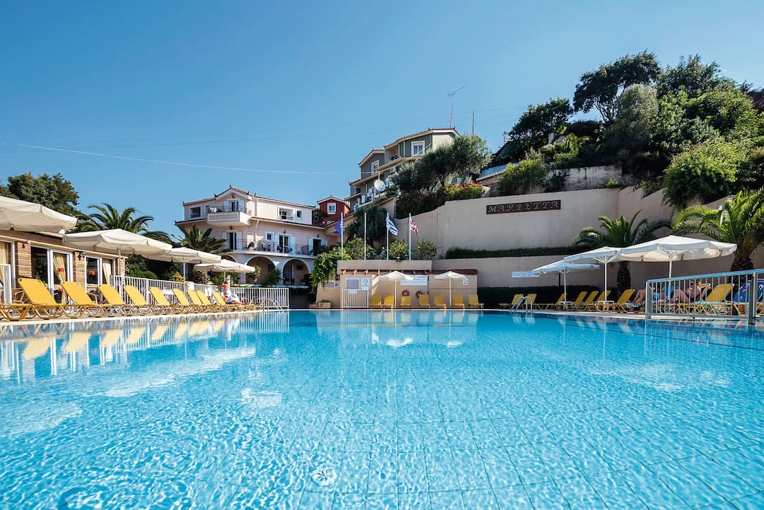 You’ll soon feel right at home at family-run Marietta Hotel Apart. Simple, comfortable apartments are housed in pastel-coloured villas nestled in hillside surroundings next to Skala. You’ll find a decent-sized pool in the garden with a sun terrace and a bar. There’s a kitchenette in each apartment but if you don’t feel like cooking, the Pool Bar serves small plates throughout the day. A delicious continental breakfast is also included. For a greater choice of restaurants and bars, head into Skala which is only ten minutes away.
