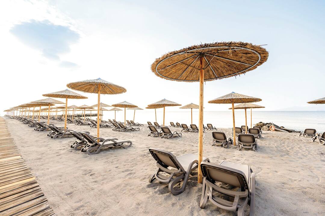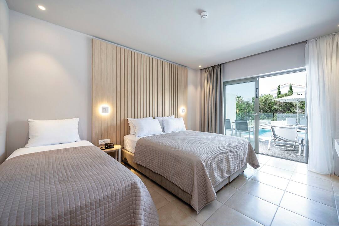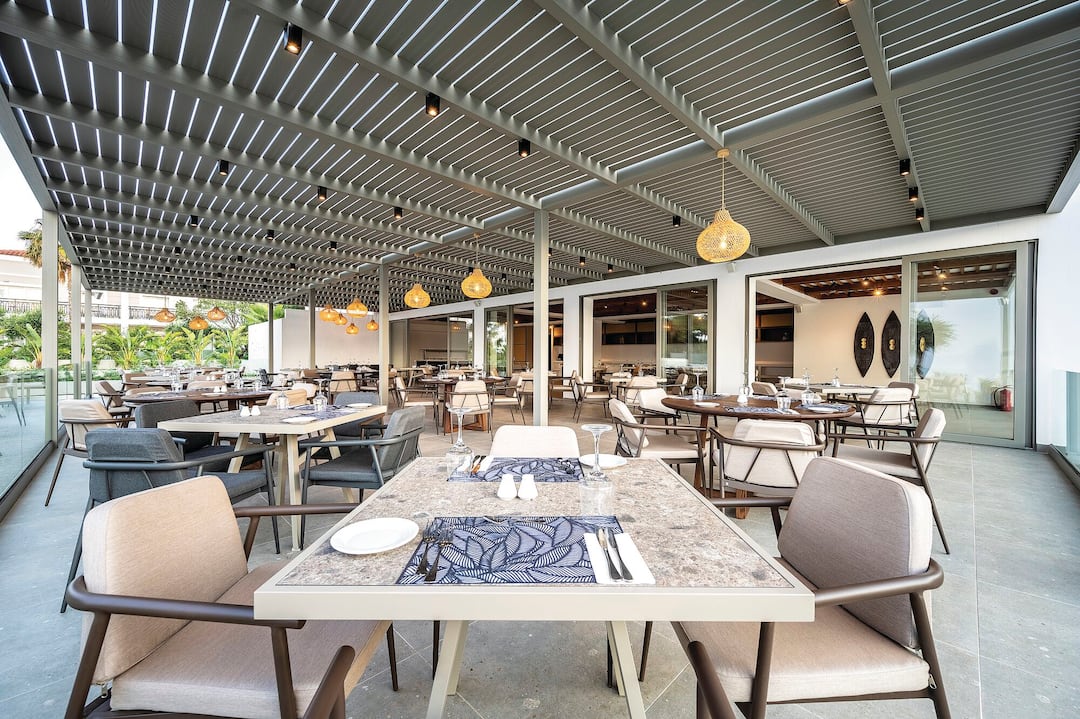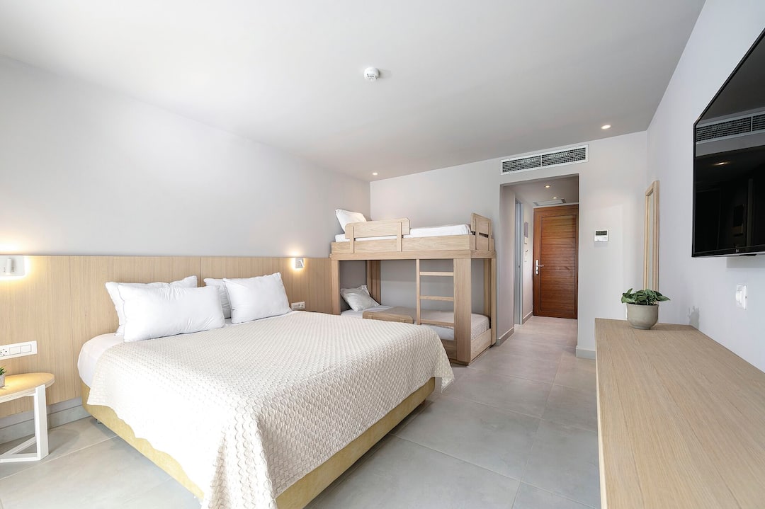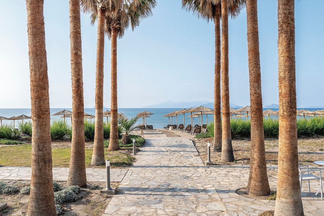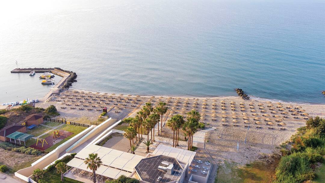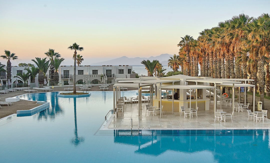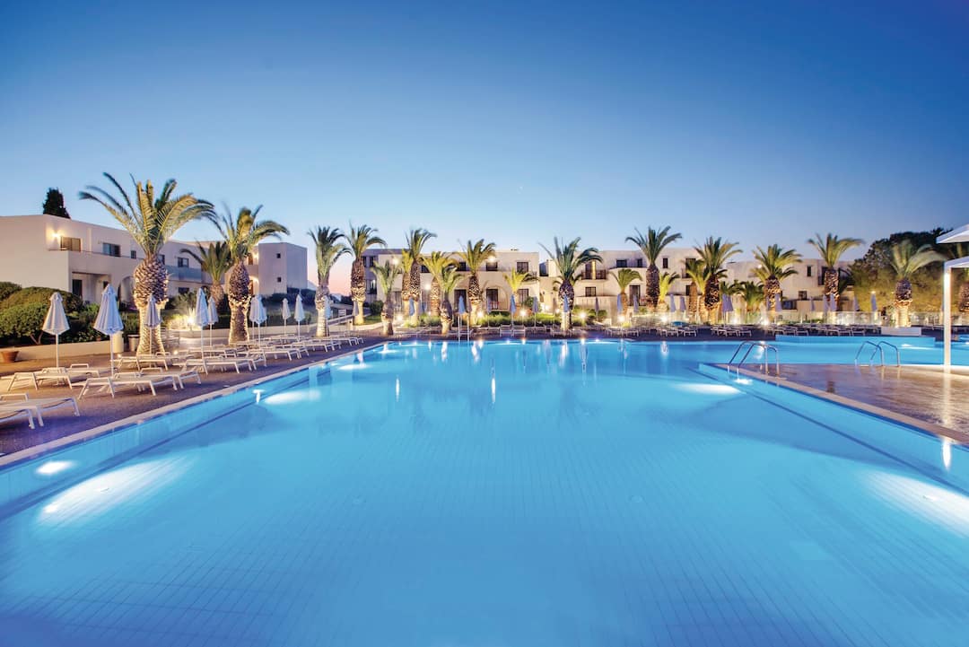 Contemporary rooms with calming neutral and blue tones offer a choice of a garden view or limited sea view. For some extra luxury, splash out on a suite which offers a spacious lounge area, too. Porto Bello Beach Hotel boasts a private marina, large lagoon-like pool, kids club, volleyball and a tennis court. There’s even a waterpark within the hotel grounds which guests can enjoy unlimited use of. Tempt your tastebuds with a choice of four restaurants serving up Greek and Mediterranean dishes, and evening entertainment in the form of live shows.