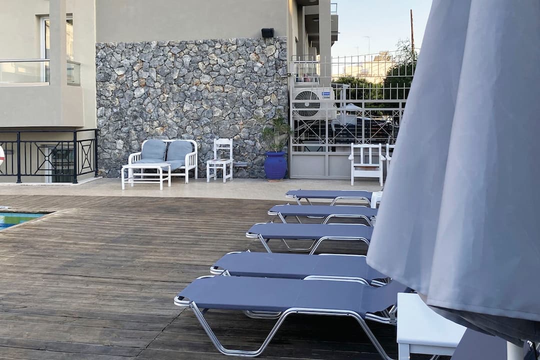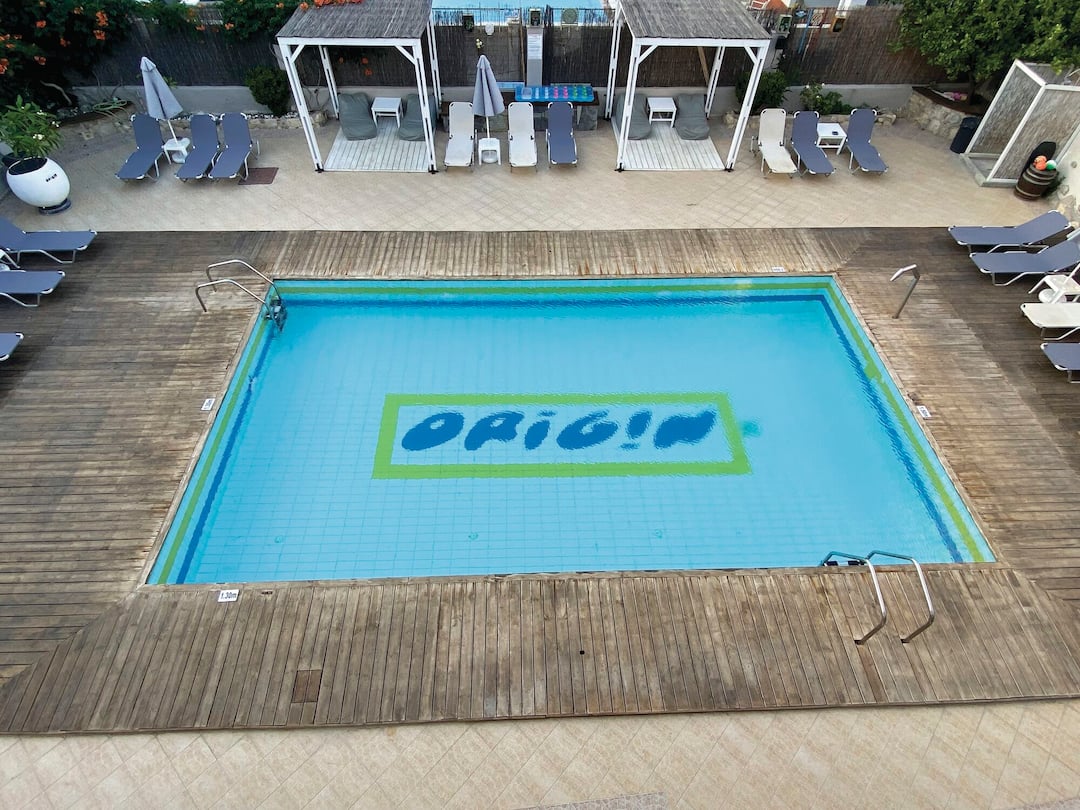 The Origin Apartments keeps things simple. There’s an outdoor pool surrounded by loungers, rooms with handy kitchenettes and a snack bar to help keep guests ticking over.