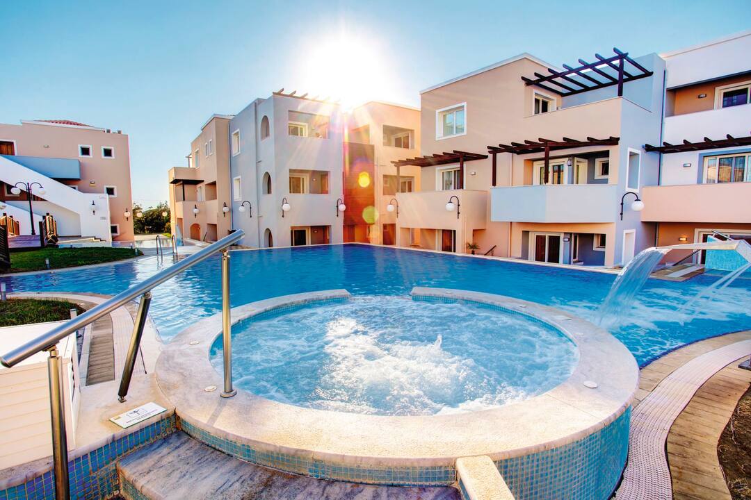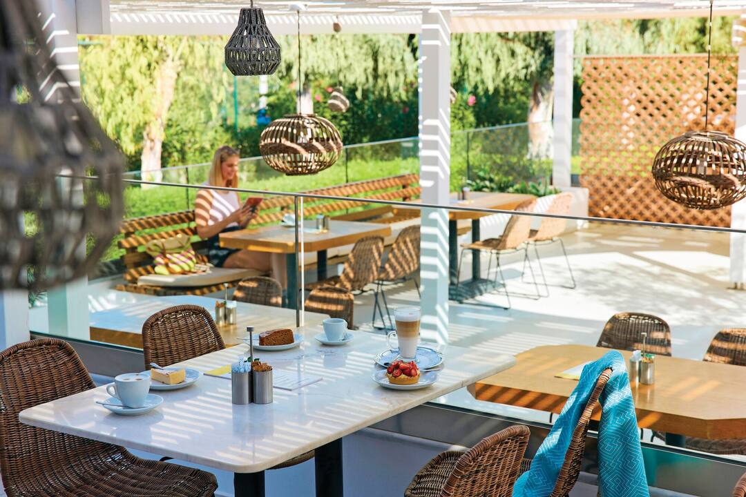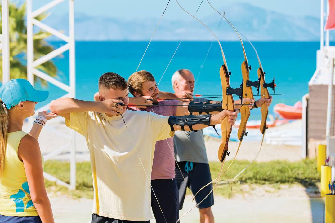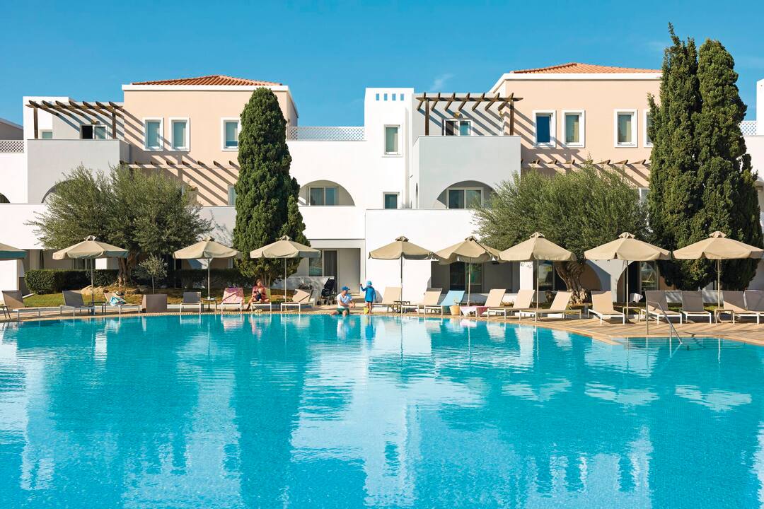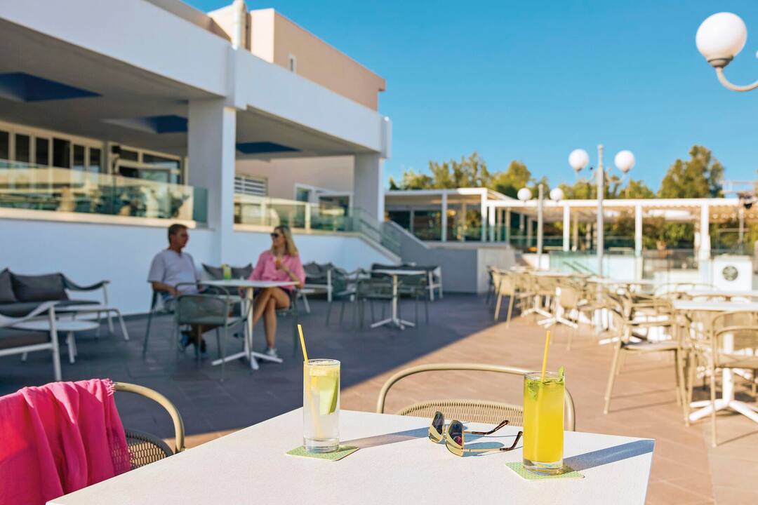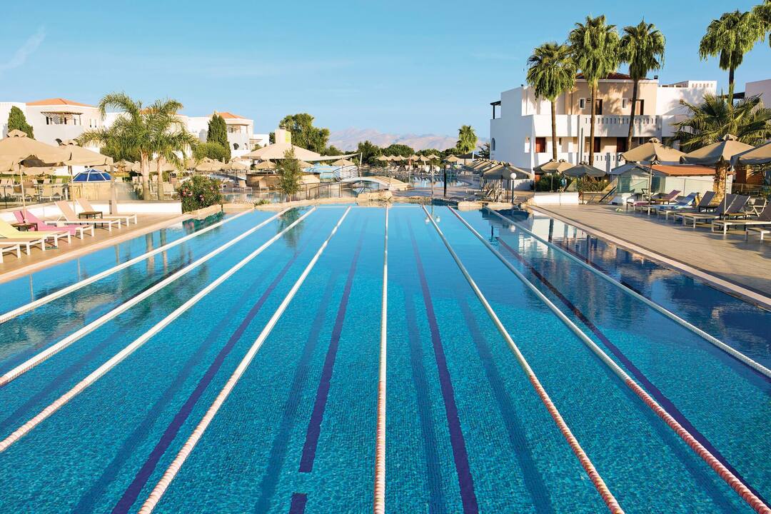 For entertainment, you can enjoy fitness classes, go windsurfing on the beach or play tennis. In the evening, traditional Greek music, 80s nights and line-dancing lessons star.
