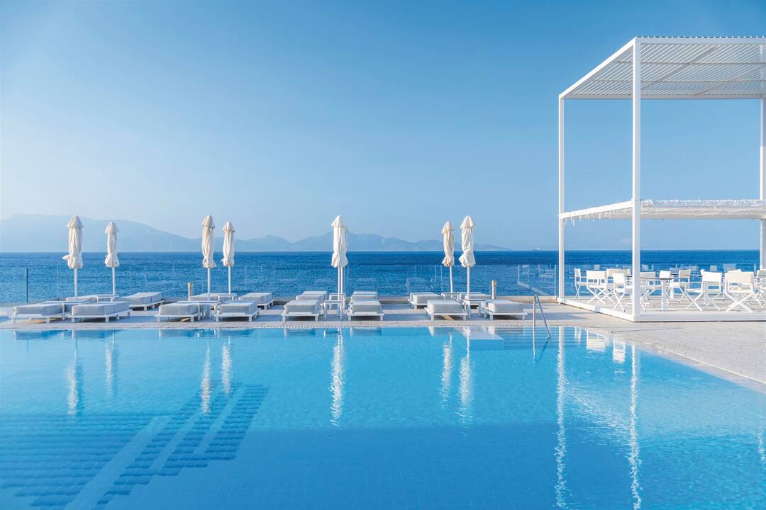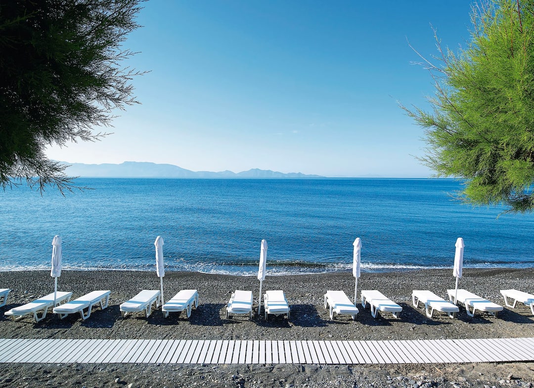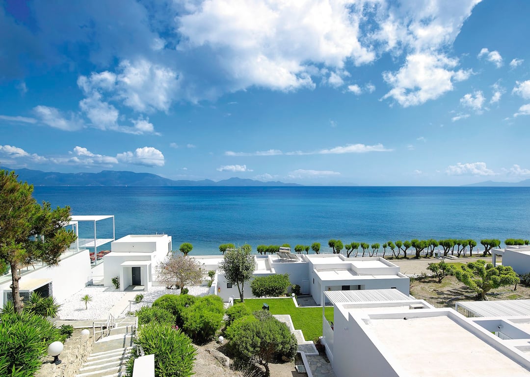 Two words spring to mind when describing the Dimitra Beach Hotel and Suites: unfathomably luxurious. Located on its own private beach, this incredible complex has been designed specifically to cater to a guest’s every whim. Three sumptuous pools with sea views, three restaurants, four bars and child-friendly facilities make this an up-market complex with a difference. A master class in minimalist, monochrome elegance, the Dimitra Beach Hotel is perched on a hillside, ensuring tranquillity, but it’s also close to local amenities, too. There’s a bus stop just outside, and Kos Town is just a short ride away. Even closer are natural hot springs, where you can wile away an hour or two.