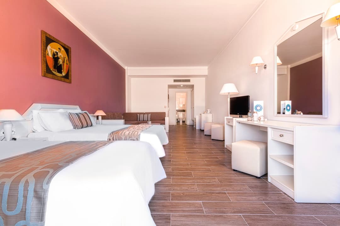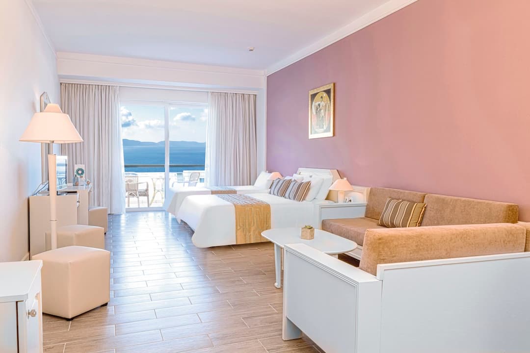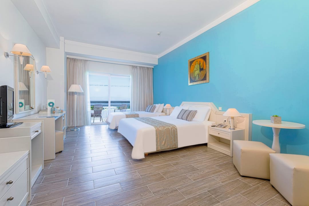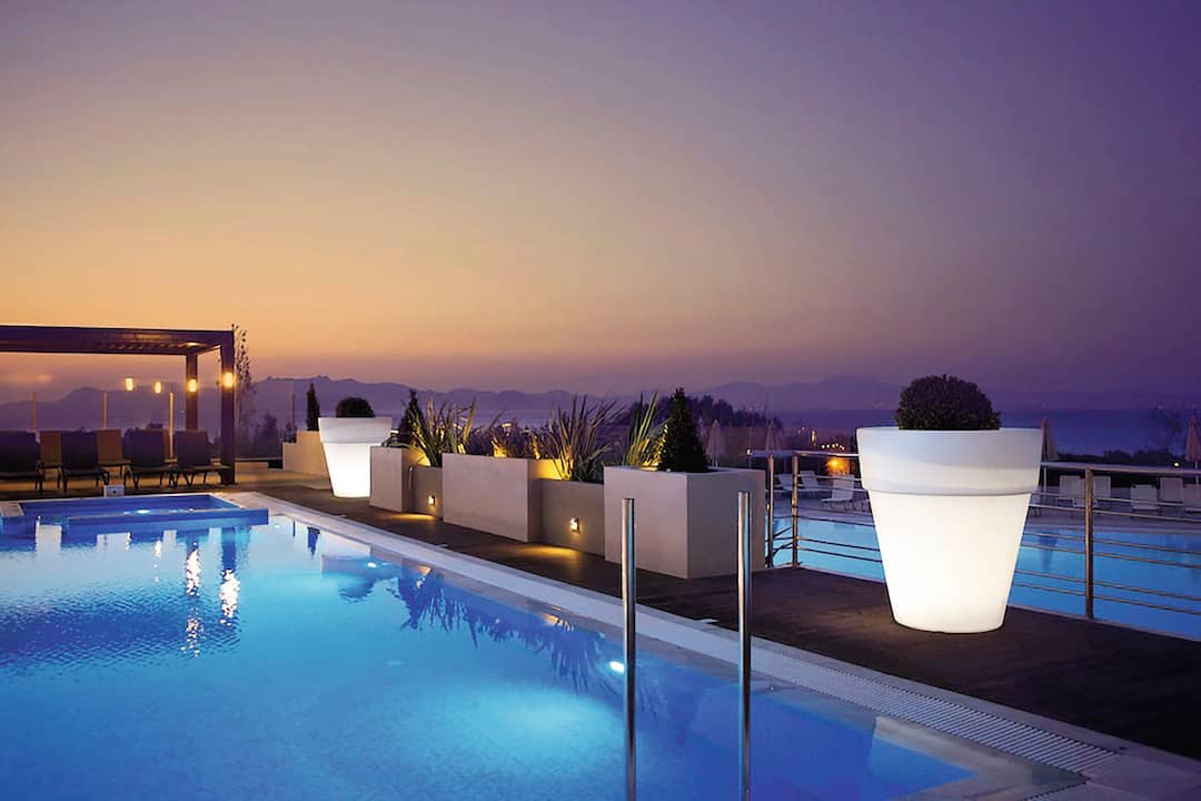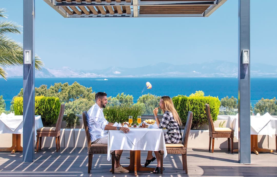 Perched on a green hill with unrivalled views of the Mediterranean coast all the way to the shores of Turkey, the Kipriotis Panorama Hotel and Suites resort is a luxury hotel where you can enjoy quality time with loved ones. Just a five-minute walk from the beach, the hotel resort boasts two large outdoor pools, a relaxing spa, state-of-the-art gym and various clubs and activities for children and teens. Adults can also get involved in the water sports, too! Enjoy delectable buffet-style dishes with a view at the Ariadne Restaurant and a delicious Mediterranean a la carte menu at the Triton Restaurant. The all-day Pool Bar and Panorama Beach Bar is great for drinks during the day, and the Main Bar and chic Red Sky Bar are perfect for the evenings.