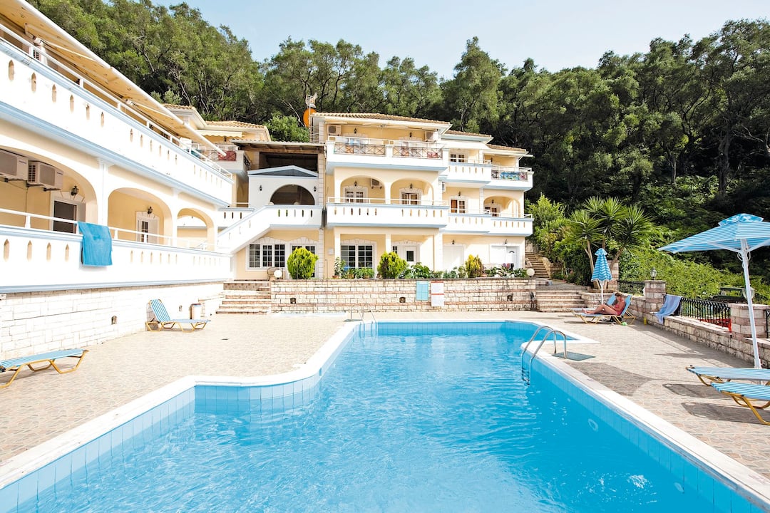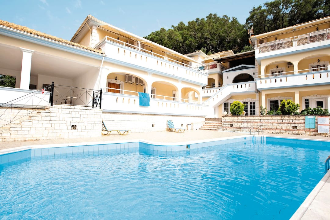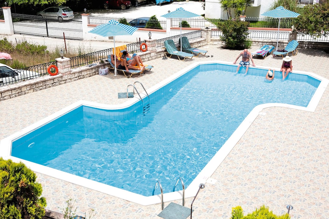 The pool is a great place to catch some rays as it’s flanked by a sun terrace that’s dotted with loungers. For a change of scenery, the hotel next door also has a pool you can use. It even comes with its own bar. For evening meals, the tavernas of Parga Town are just a 10-minute walk away.