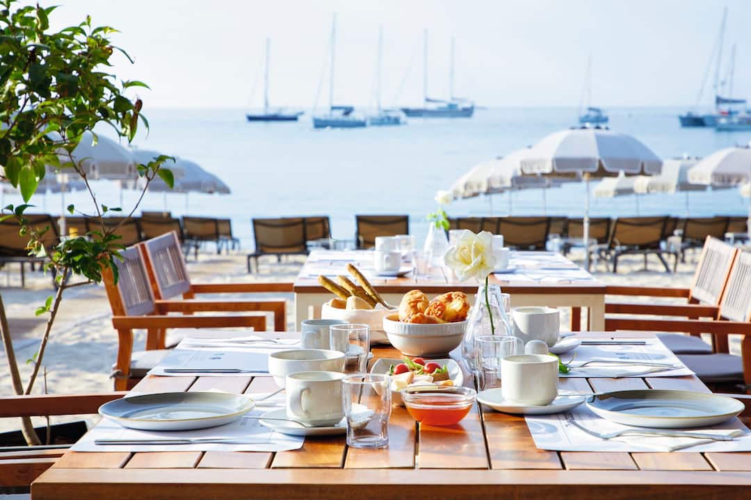 Around the complex, you’ll find four pools. One’s right on the beach, while the other three are surrounded by lawns that are dotted with bright floral borders. Wooden loungers finish things off with a flourish.