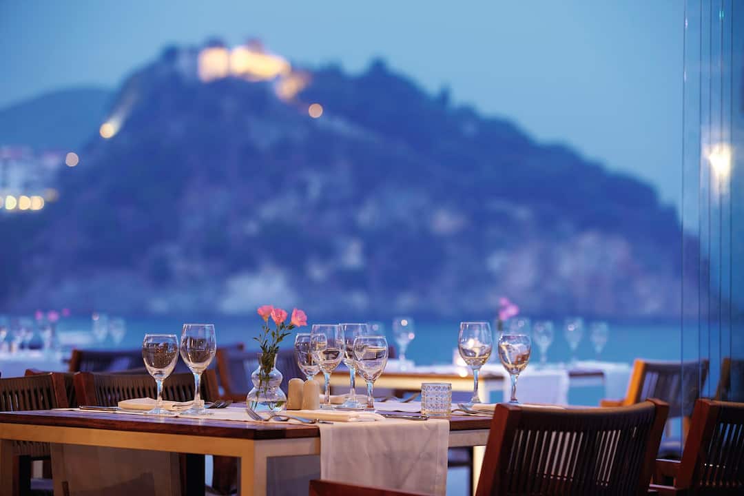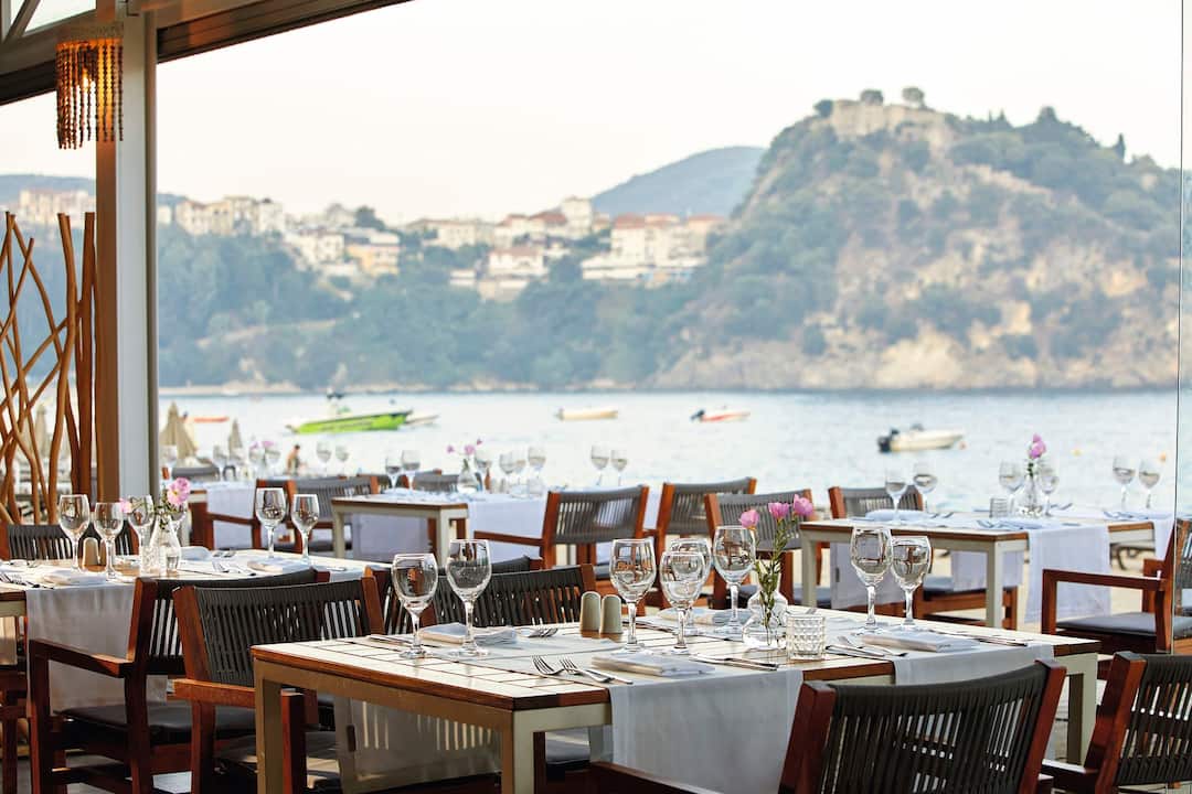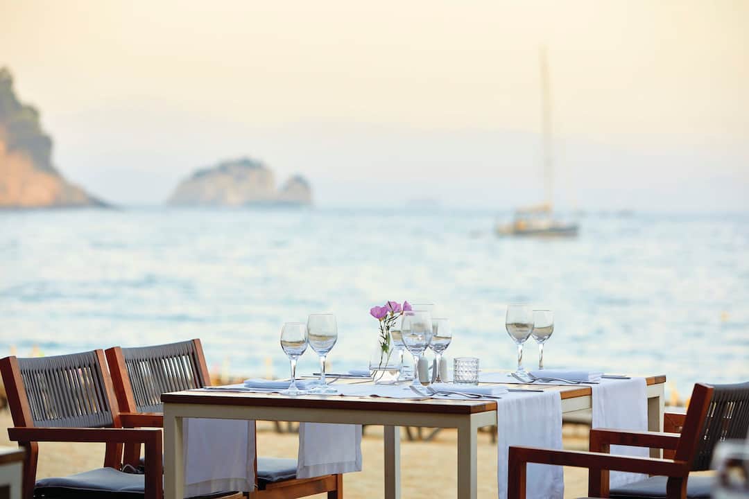 The seaside restaurant is open for breakfast, lunch and dinner. The seating looks out over the sea and Parga Castle. After you’ve eaten, live music provides the evening entertainment.