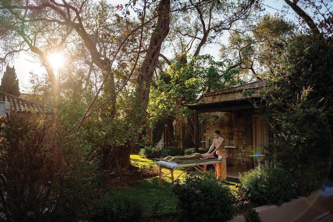 The hotel’s surrounded by olive groves. The outside of the rooms is made from reclaimed traditional stone, while inside the decor is chic with Parisian accents.