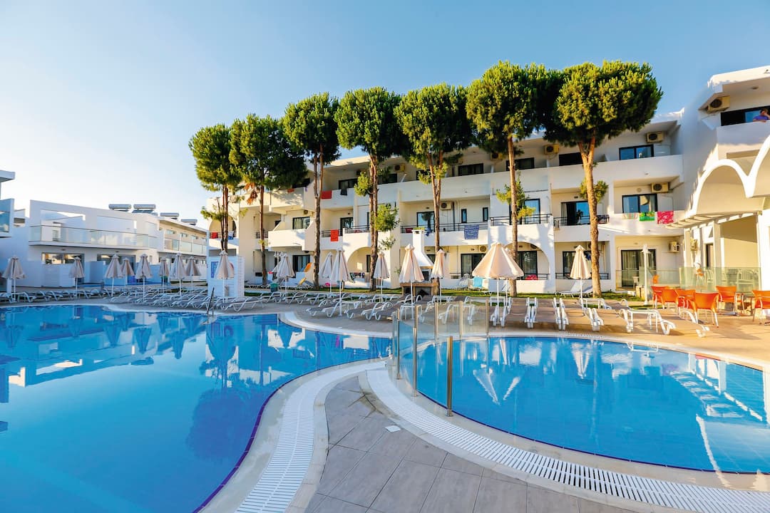 For lazy poolside days and relaxed afternoon strolls, the Rodos Star will appeal. With plenty of terrace and garden space on which to work on your tan and a separate paddling pool for the little ones, you’ve got all the holiday basics covered. There’s also a snack bar for drinks and light bites such as wraps, pizzas and kebabs. Main meals are served in the restaurant which has indoor and outdoor seating avaialble. Evenings at the Rodos Star are based around the bar and you can expect live music once a week, plus the occasional karaoke night. There’s a big-screen TV for sports enthusiasts to watch events, and you may even find Greek dancing on the entertainment agenda from time to time.