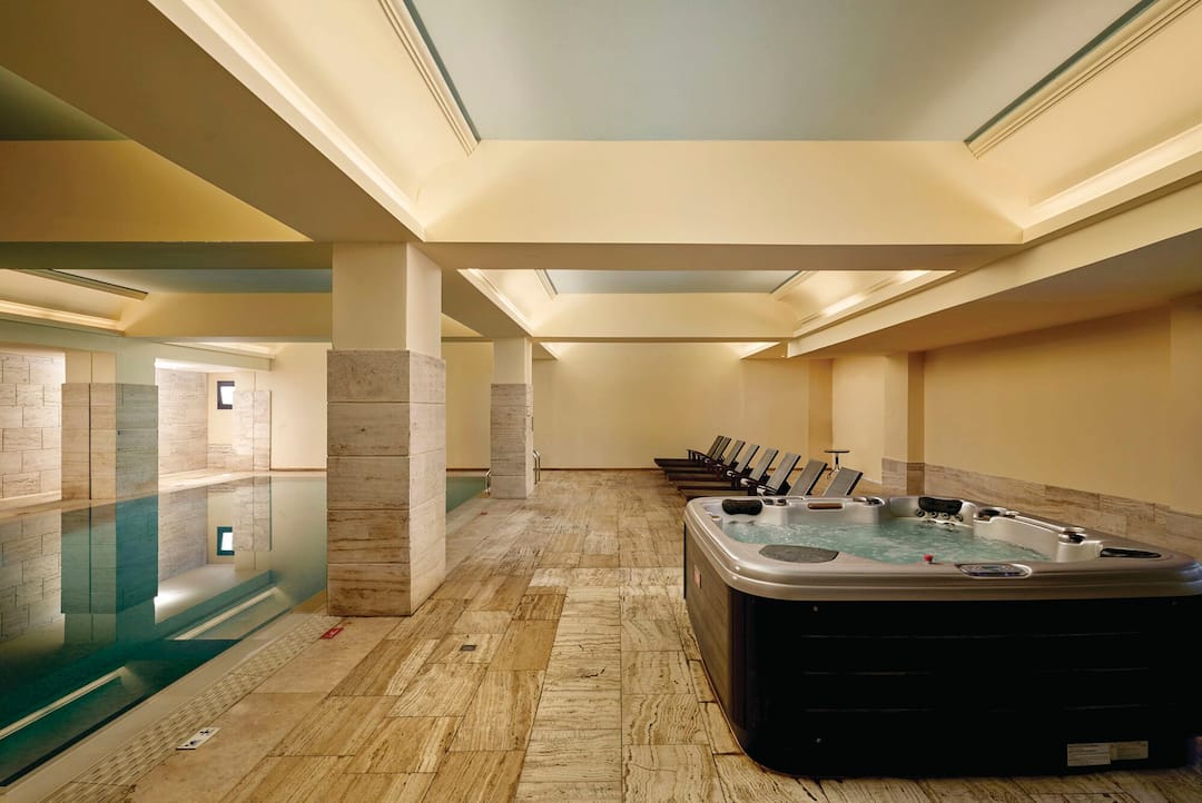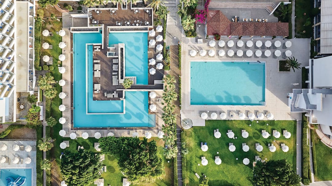 The large, square pool is perfect for chilled-out dips but a second pool is geared up for activities, including a basketball hoop for dunking. There’s also a couple of pools for kids and a snack bar to take care of hunger pangs.