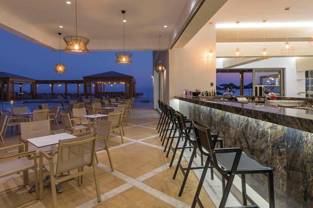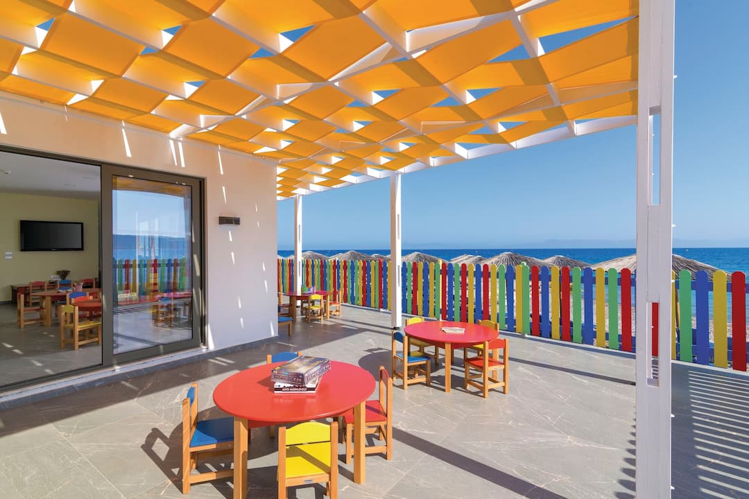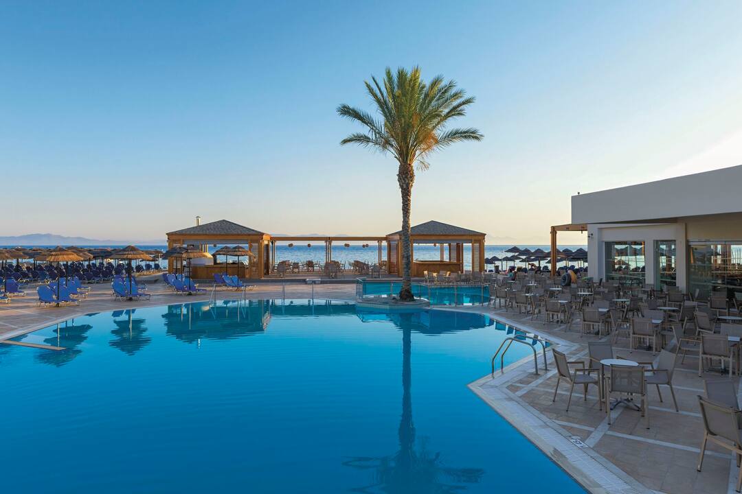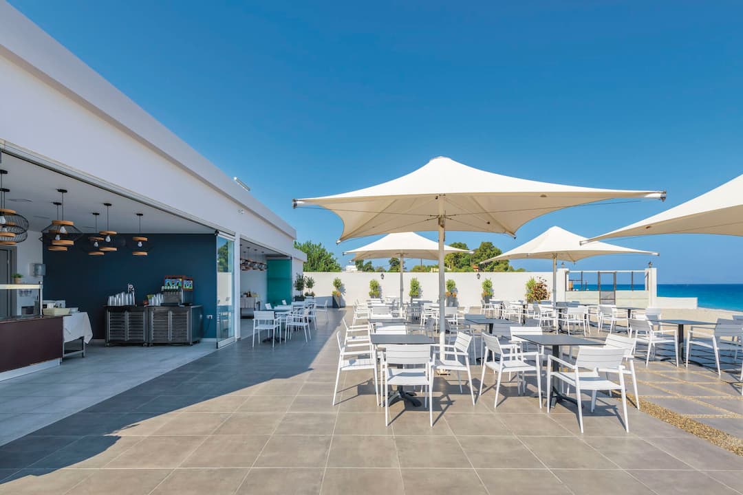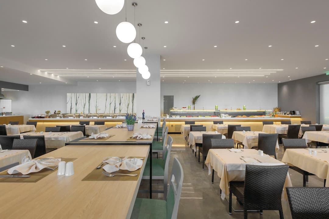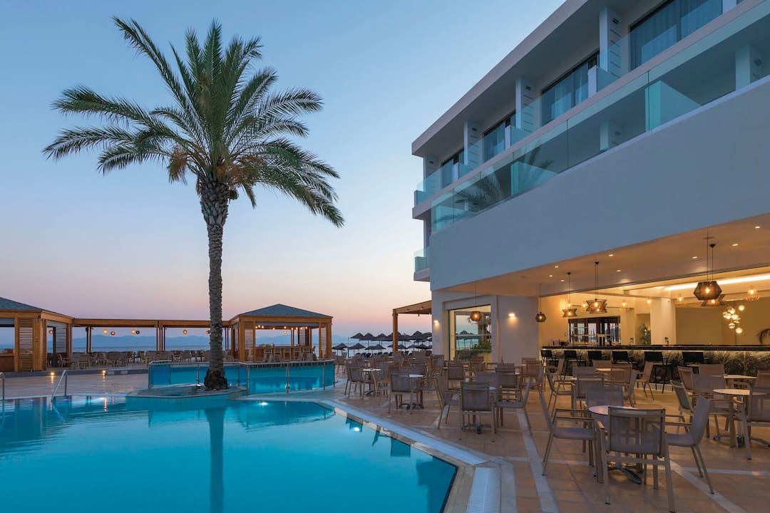 Inside, there’s a buffet restaurant that specialises in Greek classics but also serves up plenty of international dishes, too. In the evening, themed nights are regularly held. After dinner, the main lounge bar is the place to go for a cocktail. There’s also entertainment every night, including a weekly Greek night.