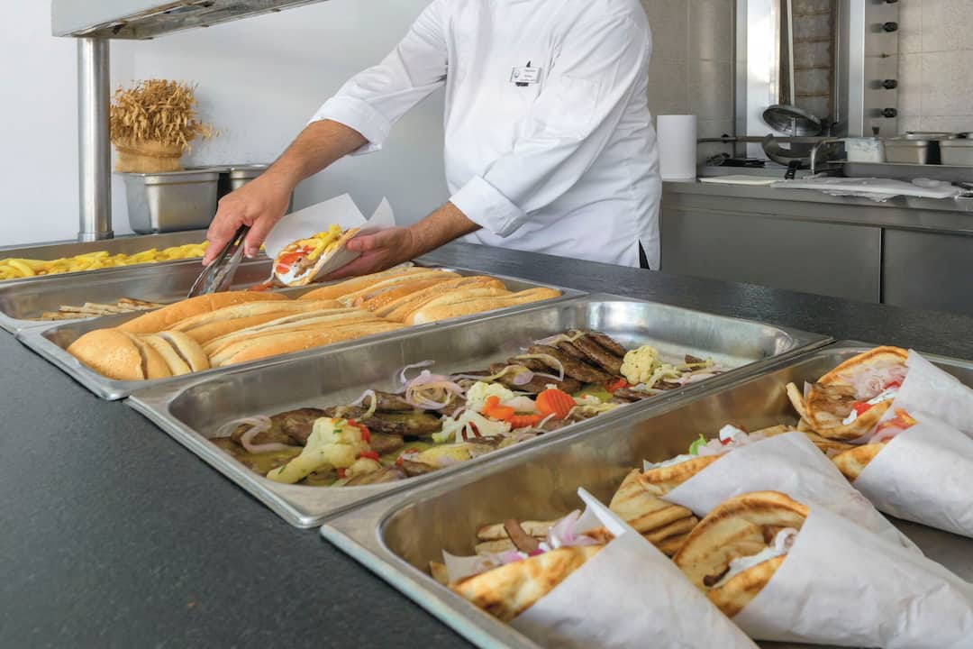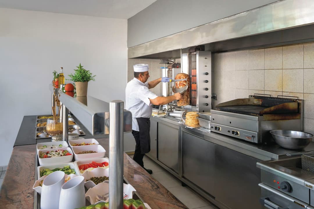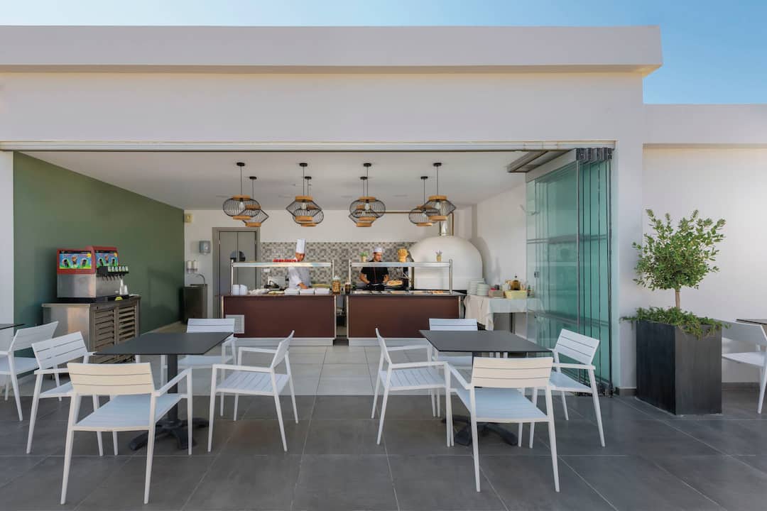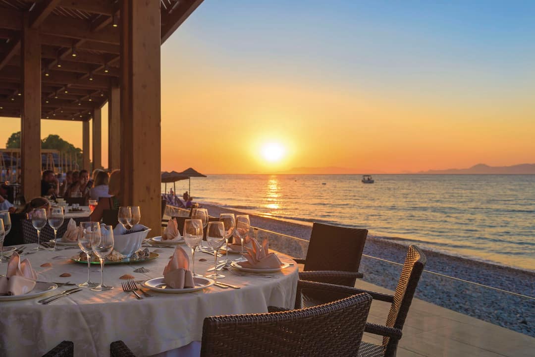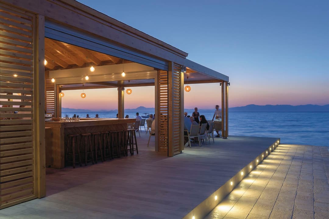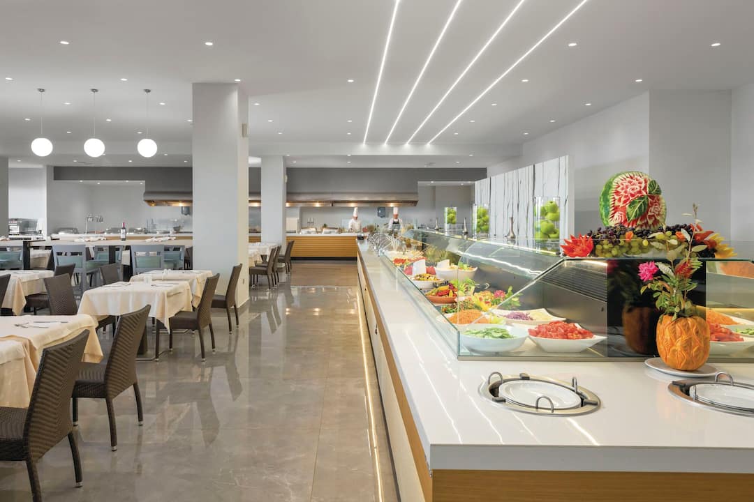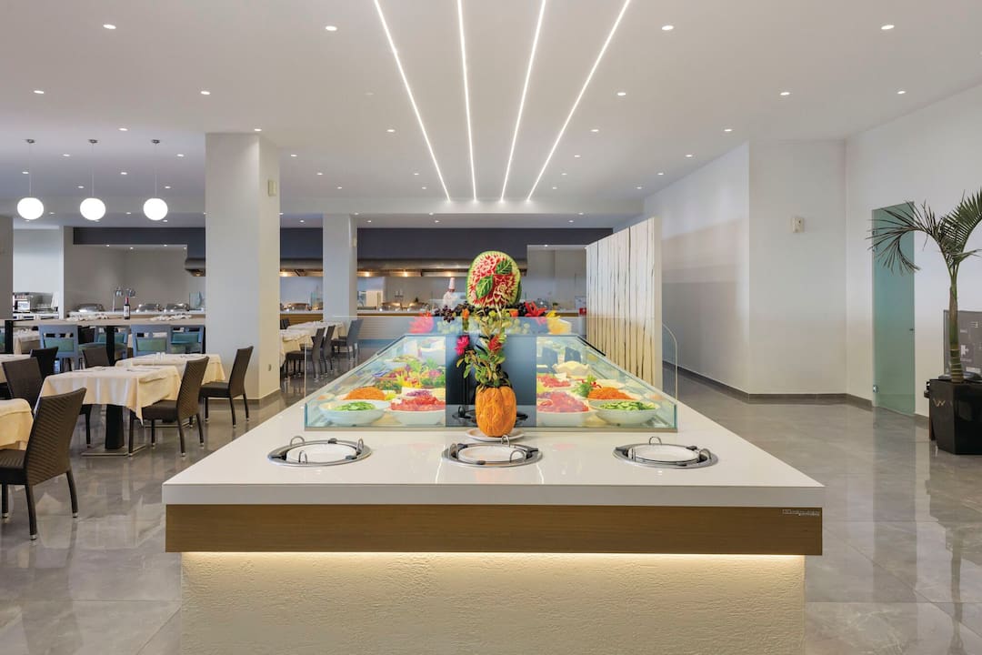 Inside, there’s a buffet restaurant that specialises in Greek classics but also serves up plenty of international dishes, too. In the evening, themed nights are regularly held. After dinner, the main lounge bar is the place to go for a cocktail. There’s also entertainment every night, including a weekly Greek night.