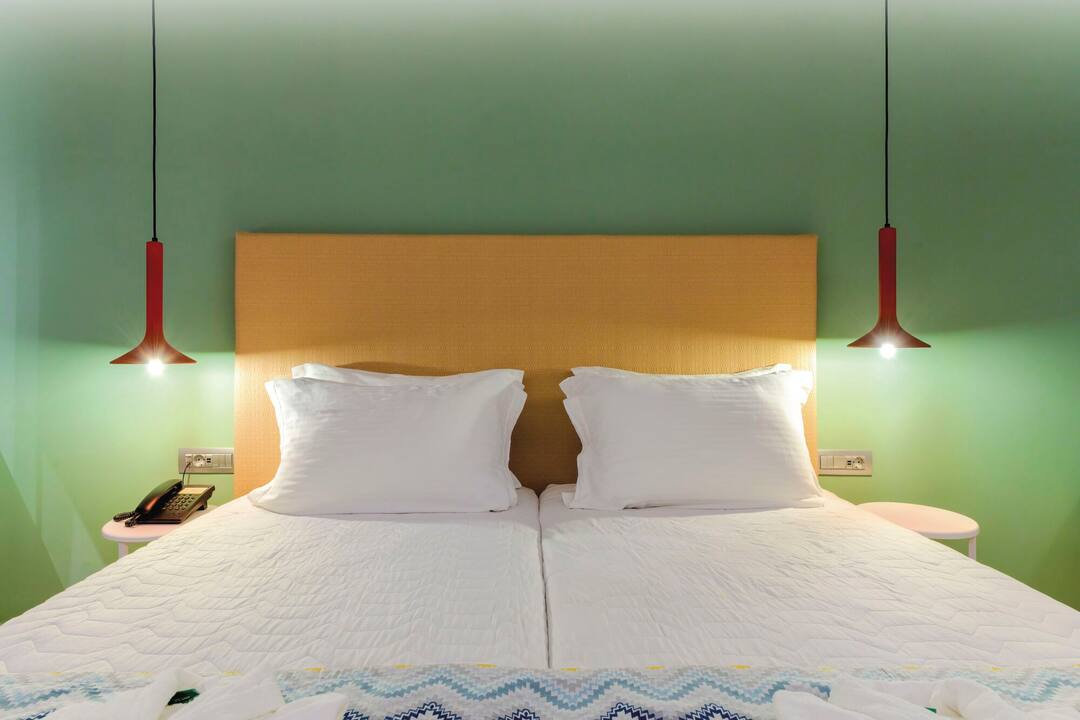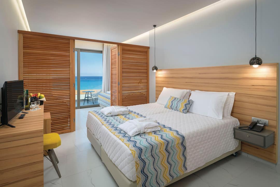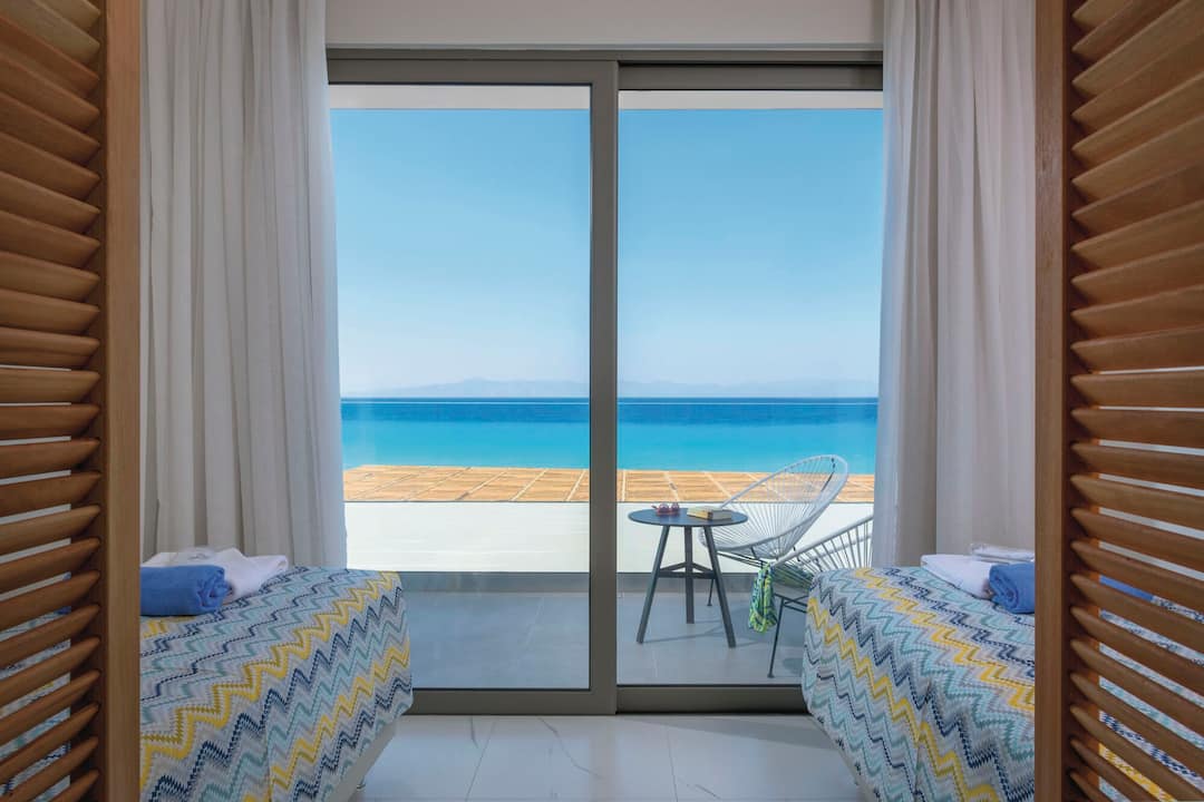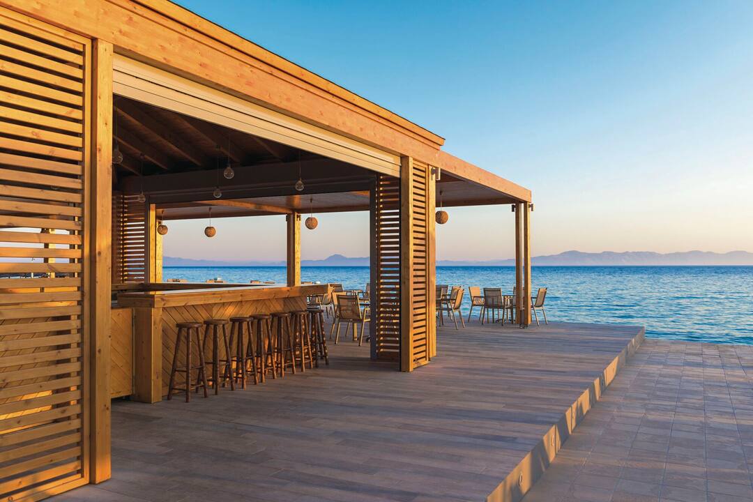 Just as its name suggests, the Avra Beach Hotel is right on the sands. The hotel provides great coastal views from almost everywhere, but the best sights are available by the pool. Nearby, there’s a snack bar that offers shade and views across the sea towards Turkey.